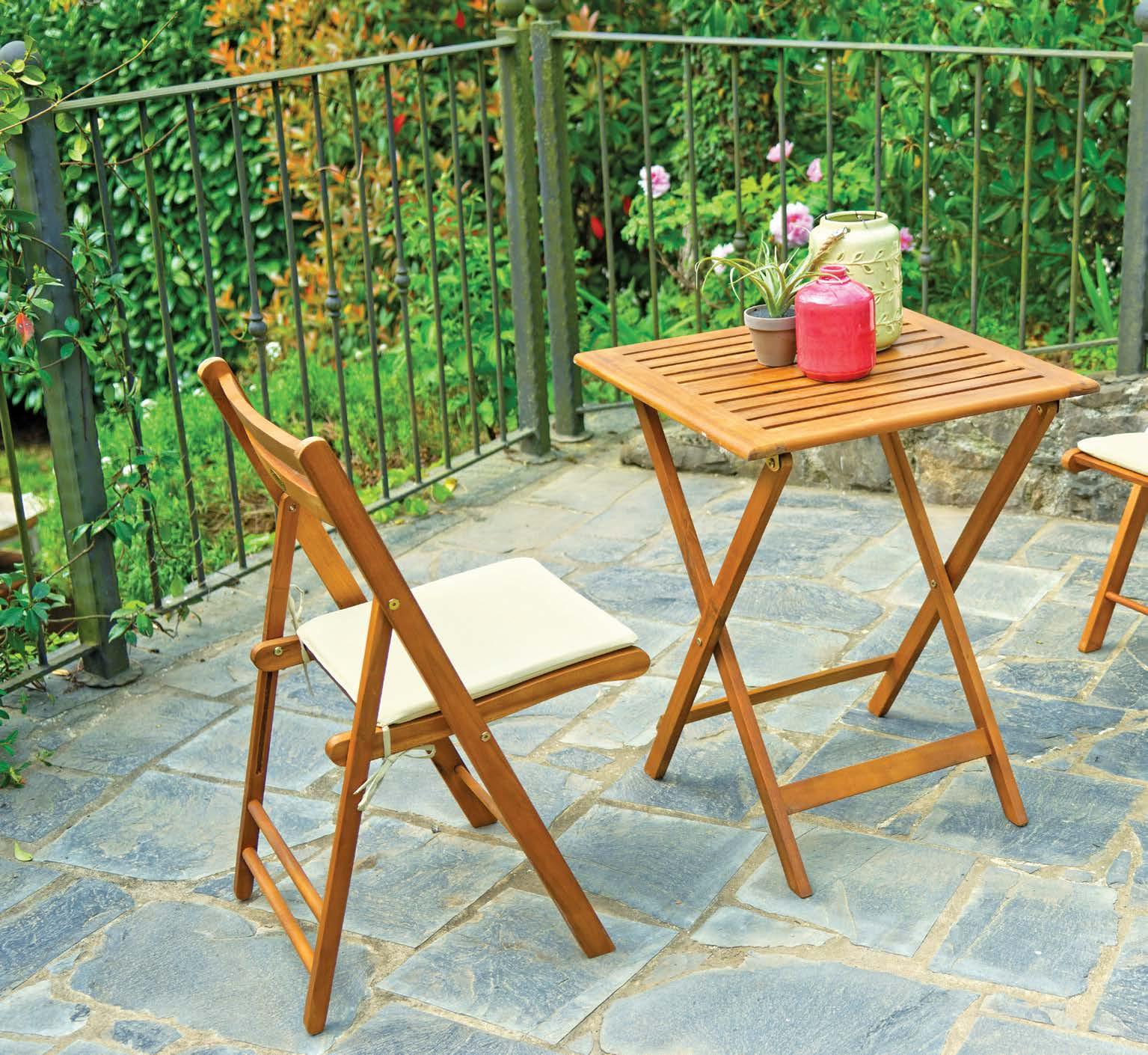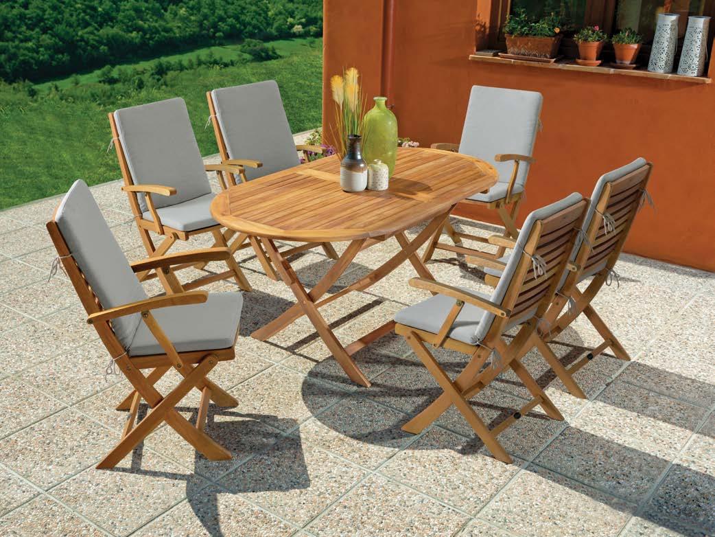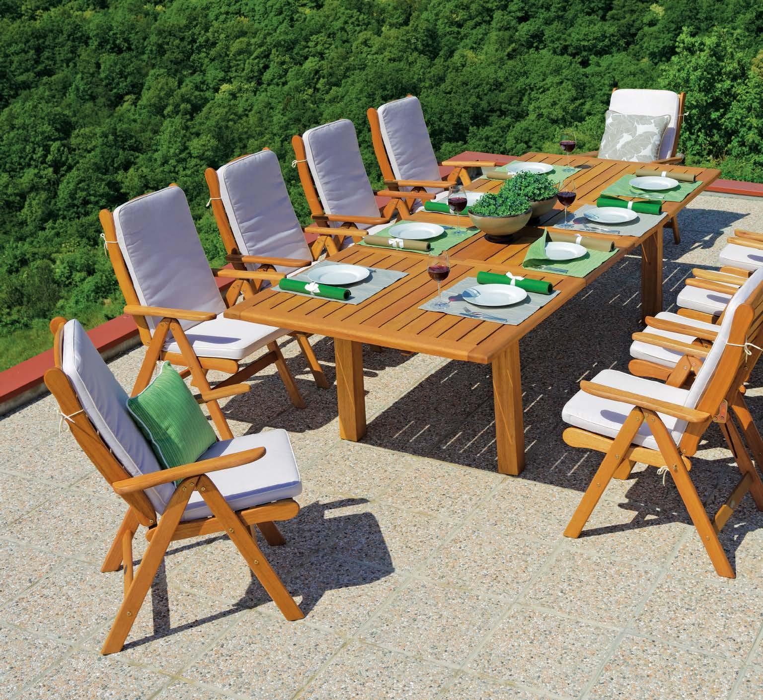 Ko na mizo in stole VISCONTI posijejo sončni žarki, se pokaže vsa kakovost materiala, iz katerega so izdelani. Les vedno doda pridih elegance. Naj vaš vrt zasije!