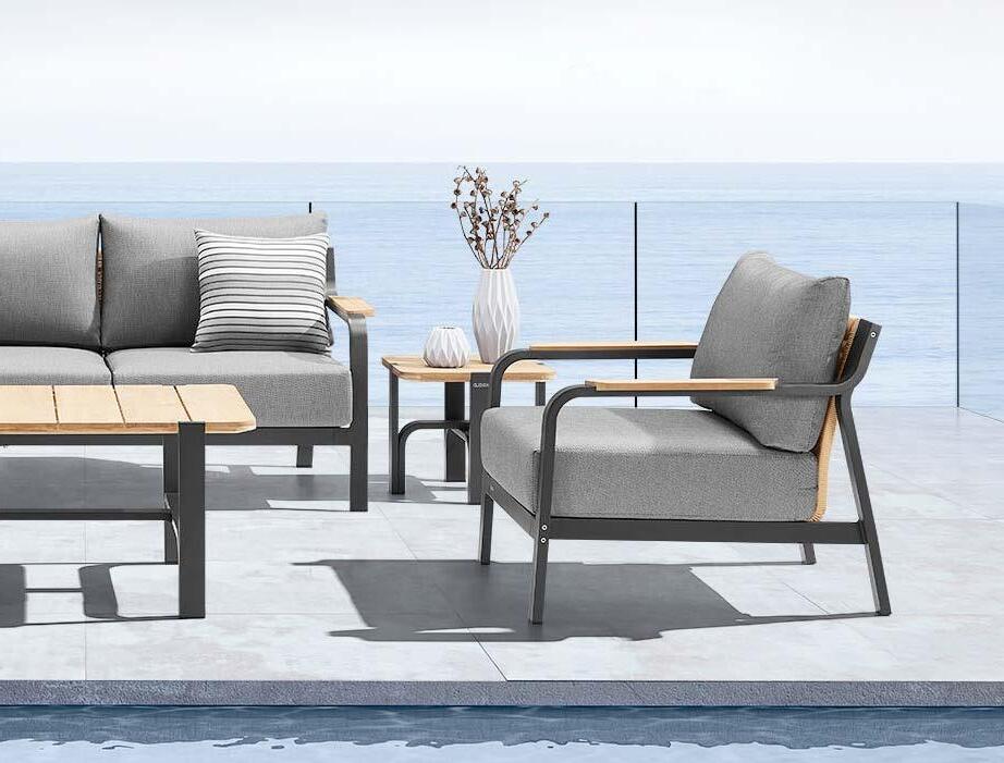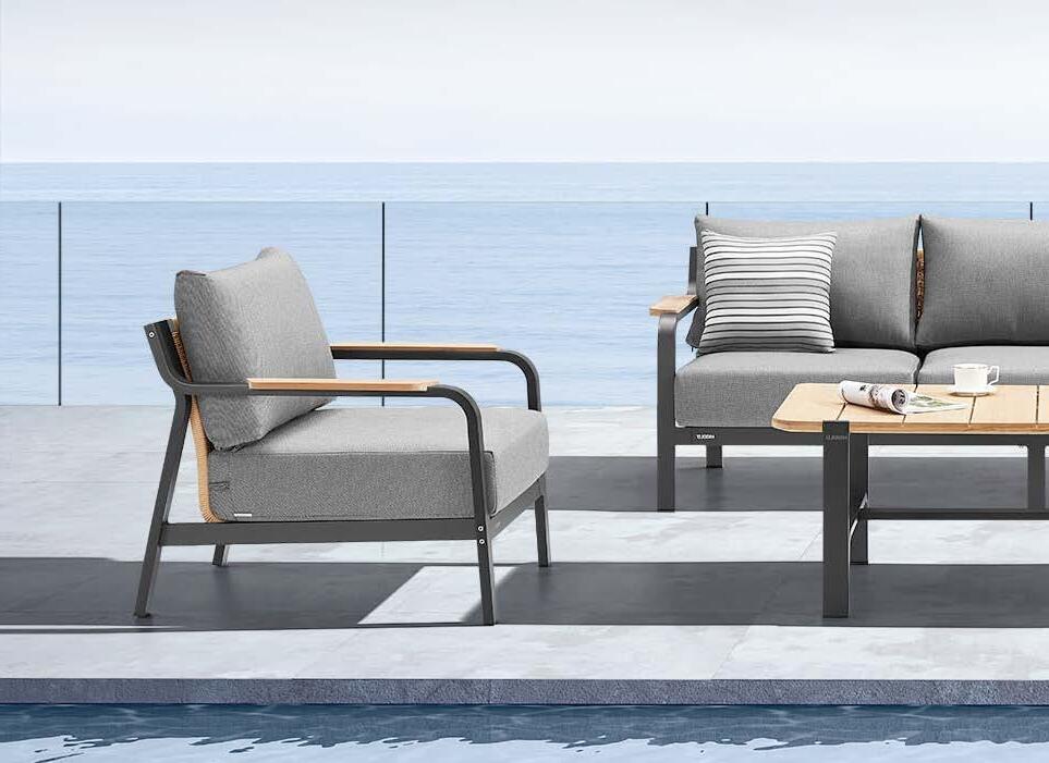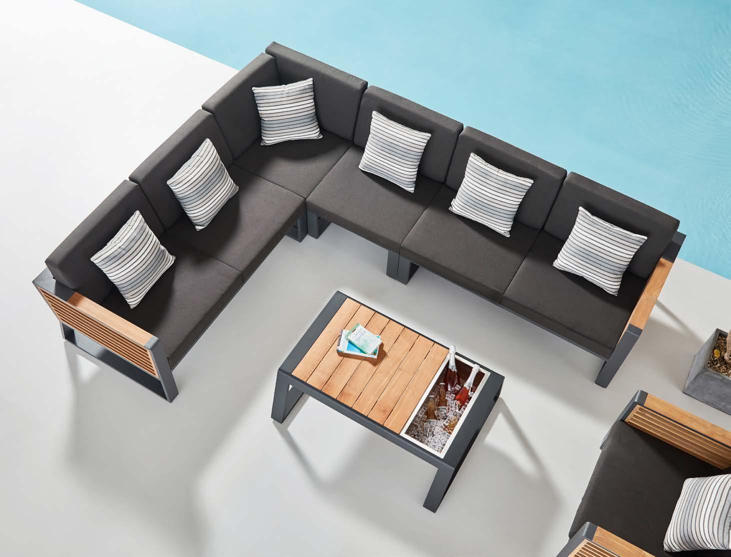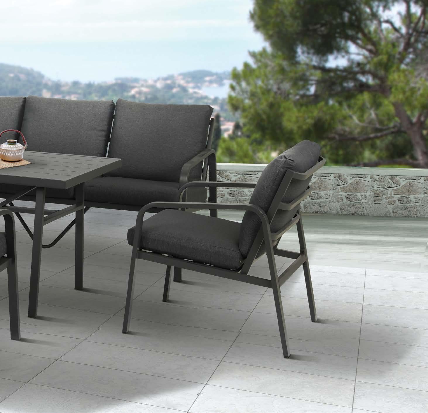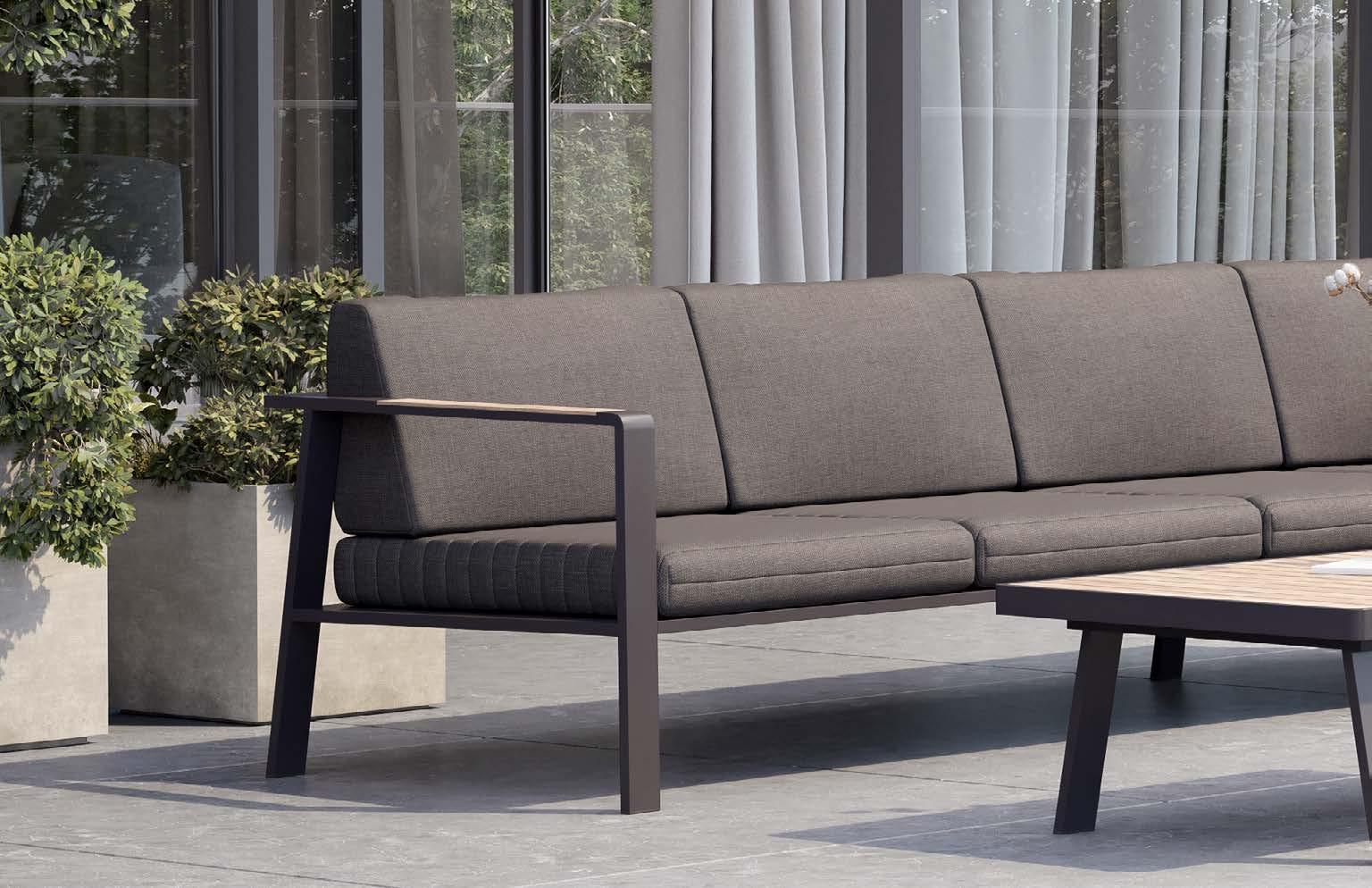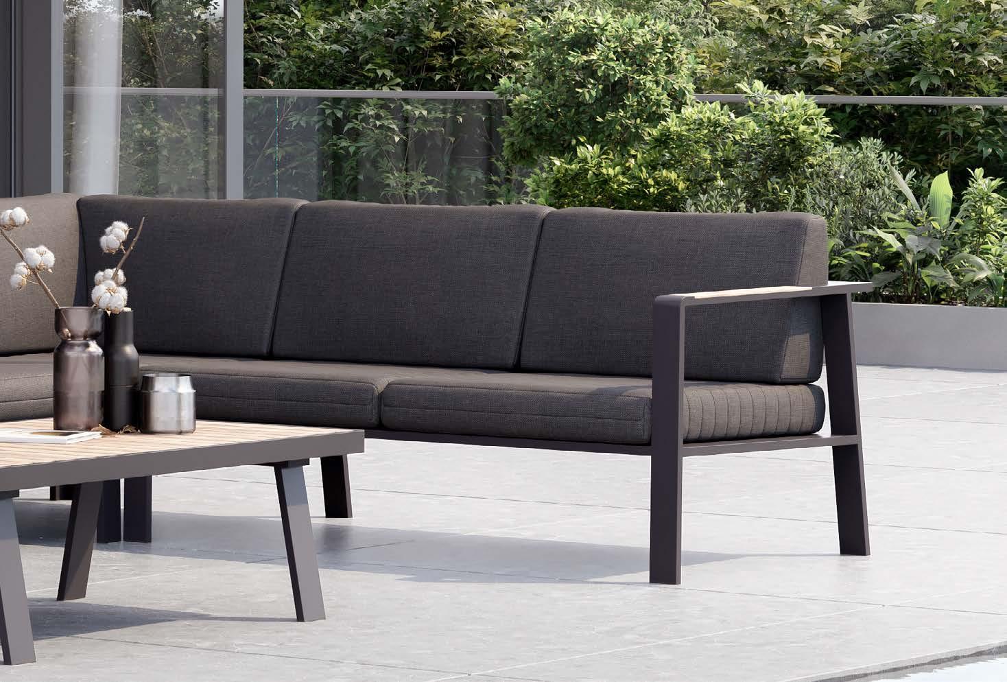 18 LJUBLJANA CELJE KOPER NOVO MESTO MARIBOR Set LISBOA, 6 kosov 3-sed z blazinami 275x94cm, 2-sed z blazinami 210x94cm, 2x fotelj z blazinami 126x94cm, klubska mizica 140x70cm, stranska mizica 40x105cm, aluminij/vrv vrtno POHIŠTVO 2023