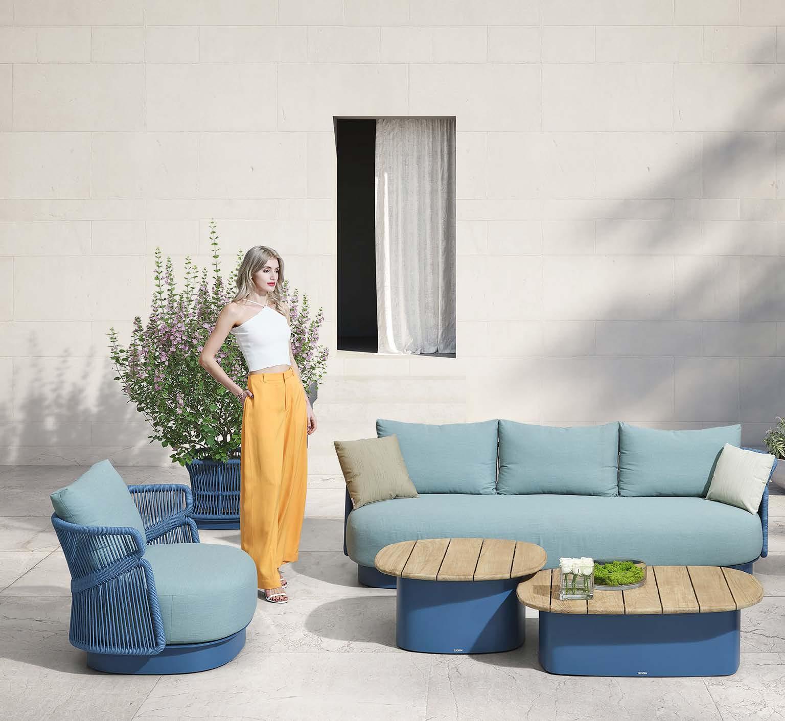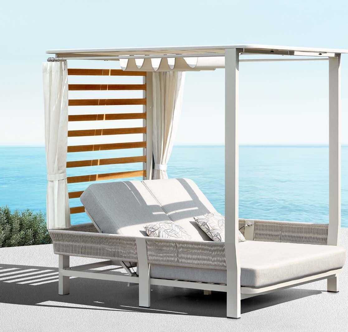Privoščite si jutranjo kavo ali popoldanski koktejl na mehkem ležišču. Vso udobje, ki ga nudi vaša postelja, imate lahko tudi na prostem. Vrtni postelji AIO svoj pečat dajejo mehke silhuete na eni in vrv na drugi strani. Kontrast, ki se mu ne morete upreti.