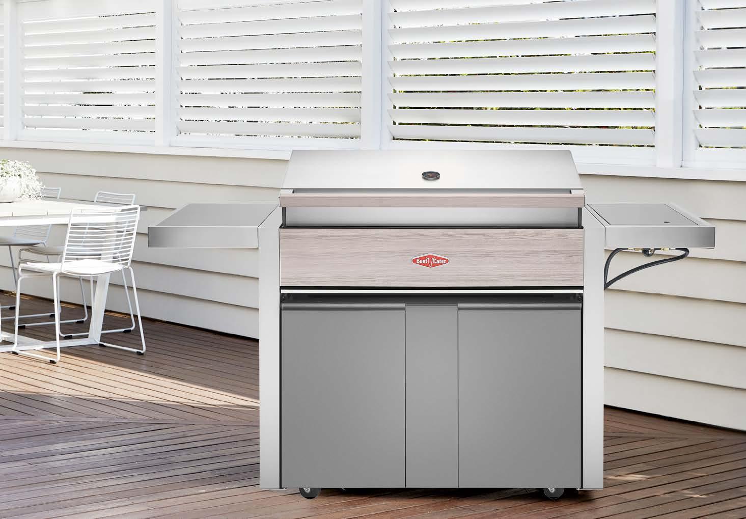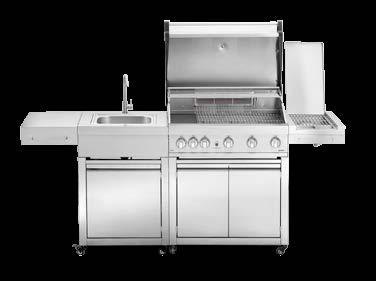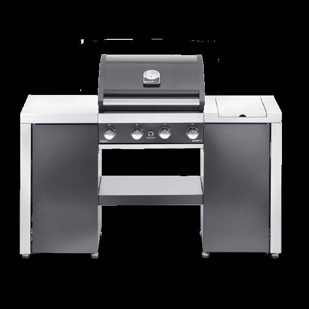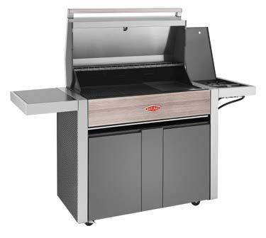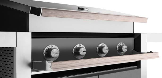 Nova dimenzija oblikovanja žara, ki se popolnoma vklopi v vaš kotiček na prostem. Pokrita kontrolna plošča zagotavlja brezhiben videz žara, ko ga ne uporabljate. Ko uživate v peki, pa se pokrov spremeni v priročno poličko. Prostorne stranske police so izdelane iz nerjavečega jekla in omogočajo enostavno pripravo hrane, medtem ko spodnje omarice nudijo veliko prostora za shranjevanje.