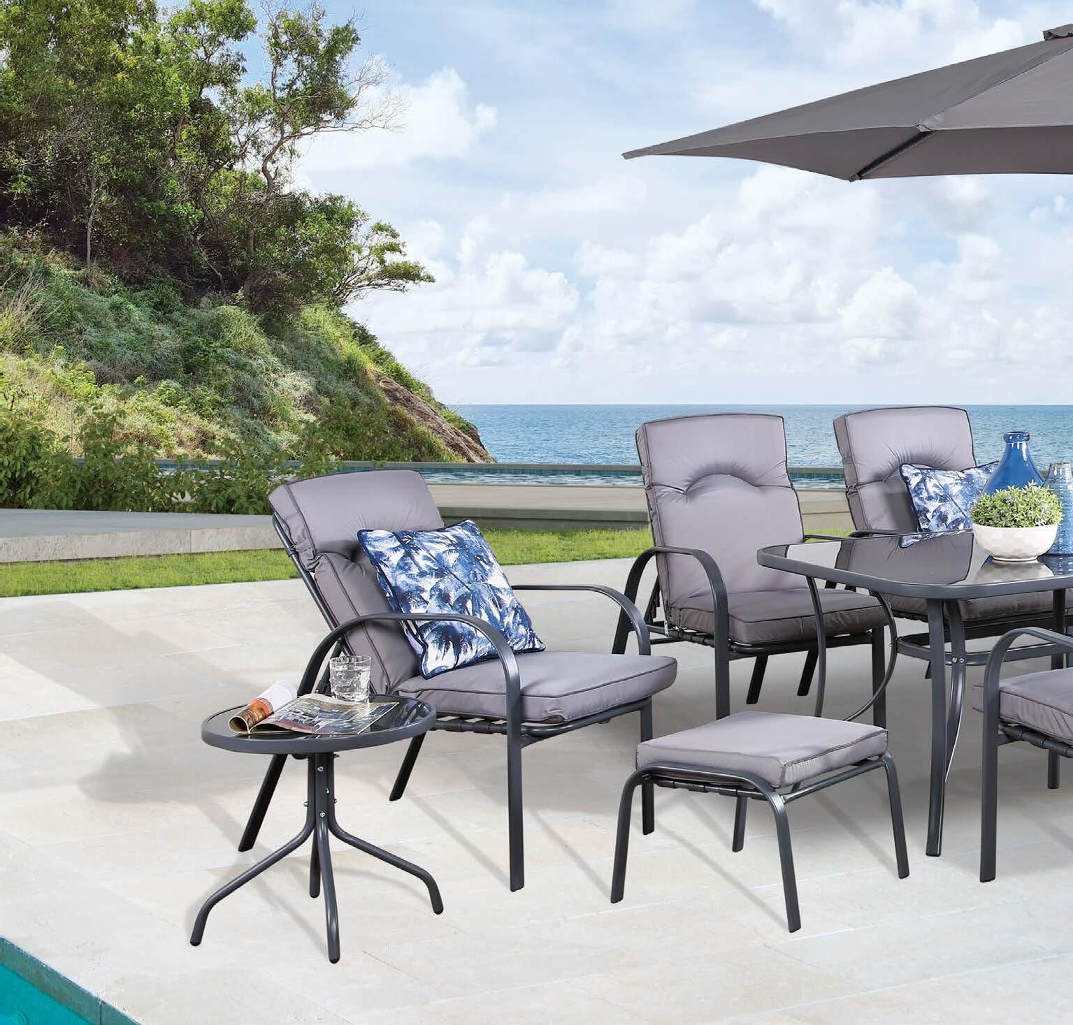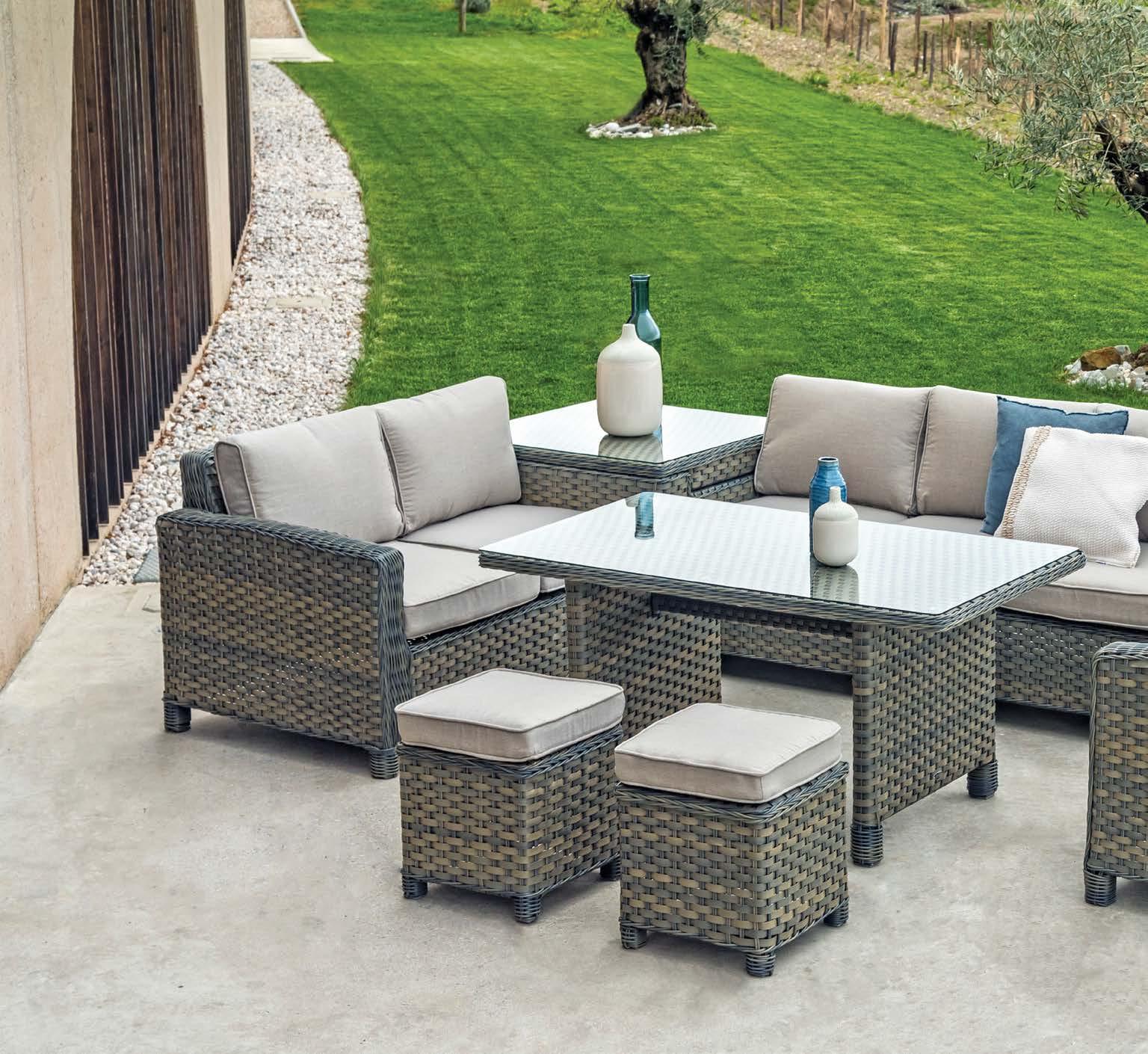 Očarajte z vrtno garnituro CAMBUSA, ki nudi udobje in dovolj prostora za vse vaše najljubše goste.
