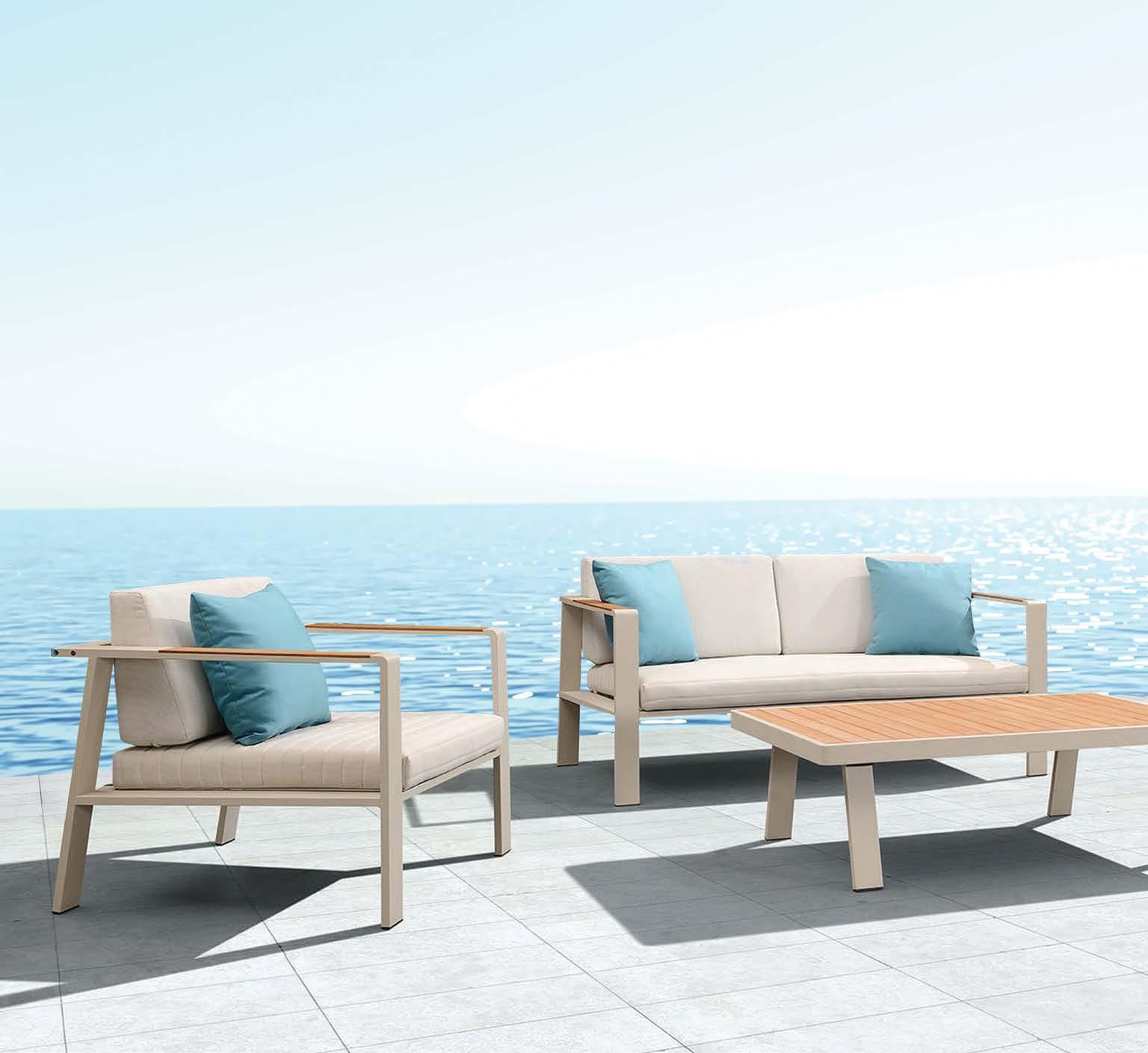 z blazinami 217x77cm, 2x fotelj z blazinami 81x77cm, mizica 70x120cm, aluminij/tik/vrv