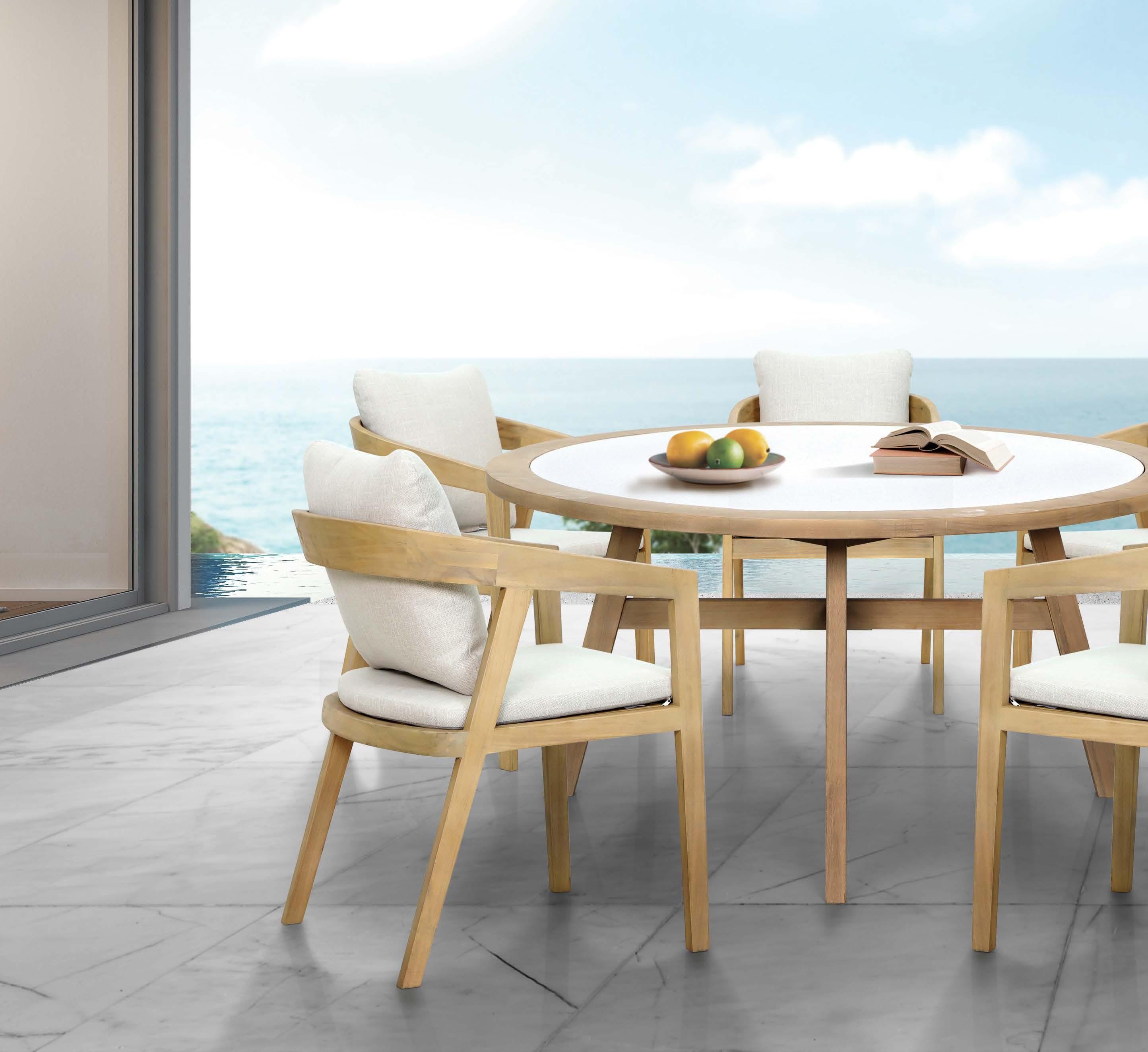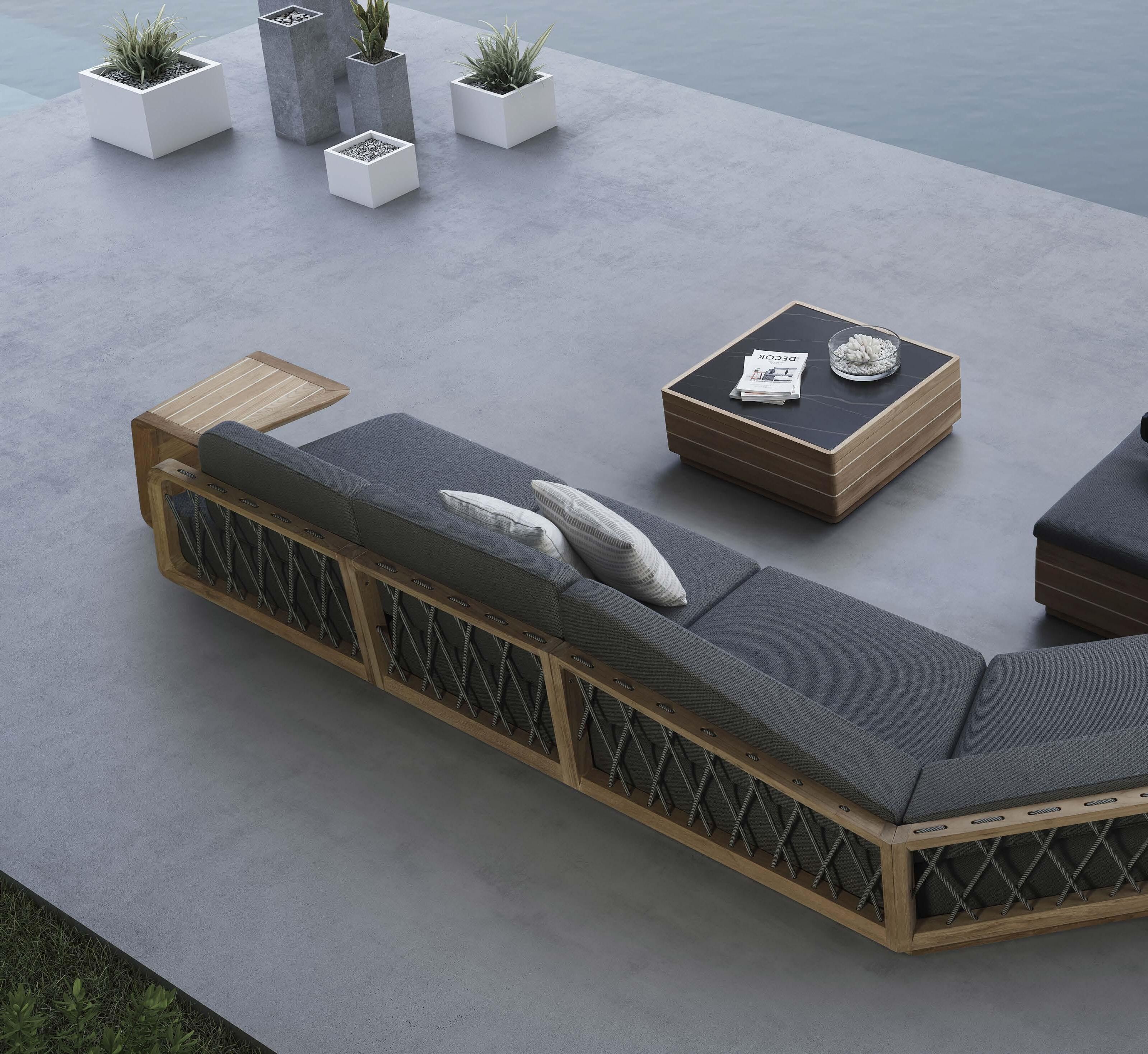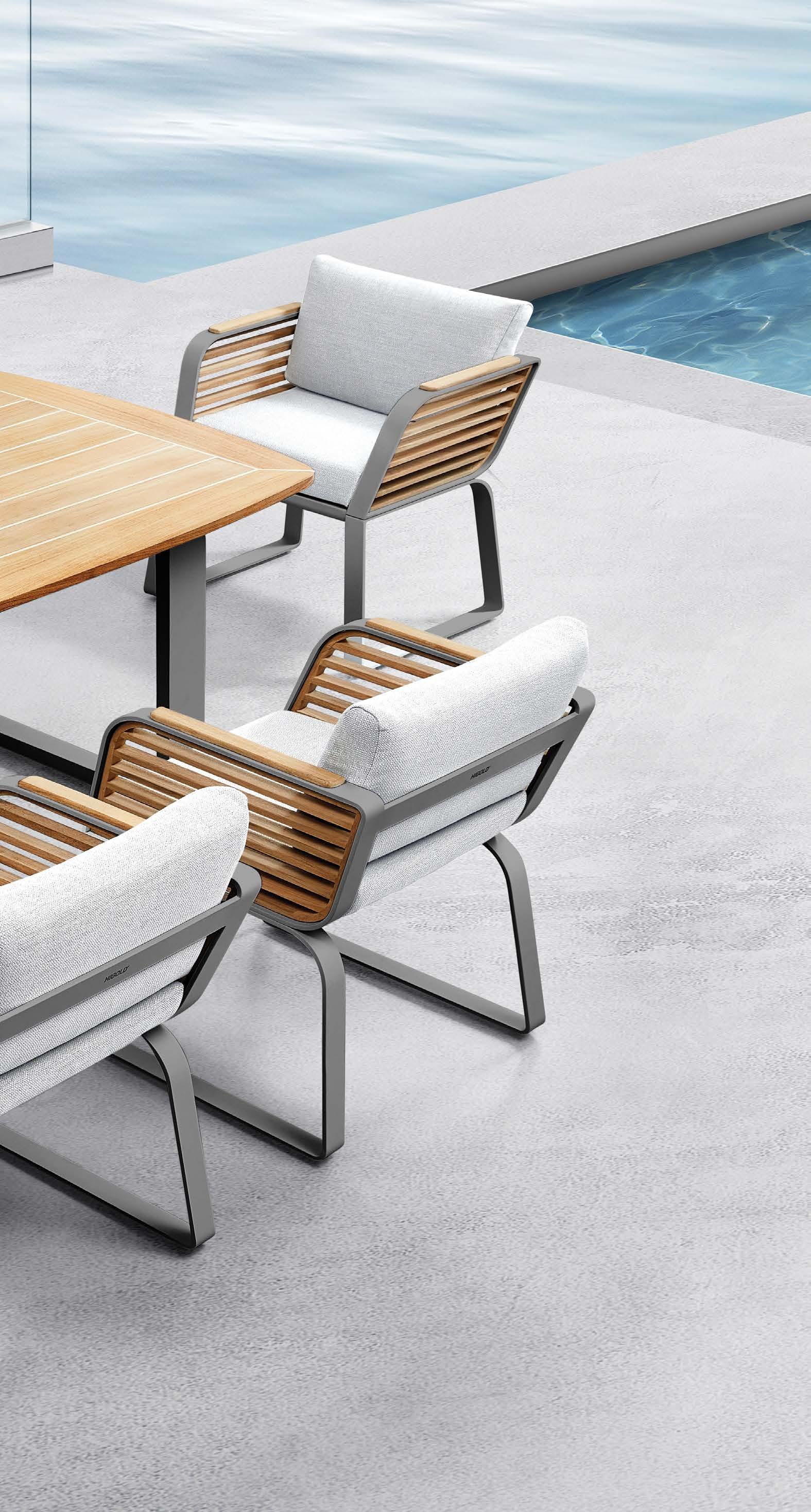 Odkrijte eleganco seta PALLISAD, ki je prava paša za oči v vsakem prostoru. S svojimi tekočimi, okroglimi linijami in prefinjenim zaključkom združuje eleganco z mehkim dizajnom. Naj vas navdihne harmonična kombinacija tikovega lesa in mehkobe blazin. Vabljivo vzdušje je kot nalašč za prijetne večerje in živahne pogovore z družino in prijatelji.