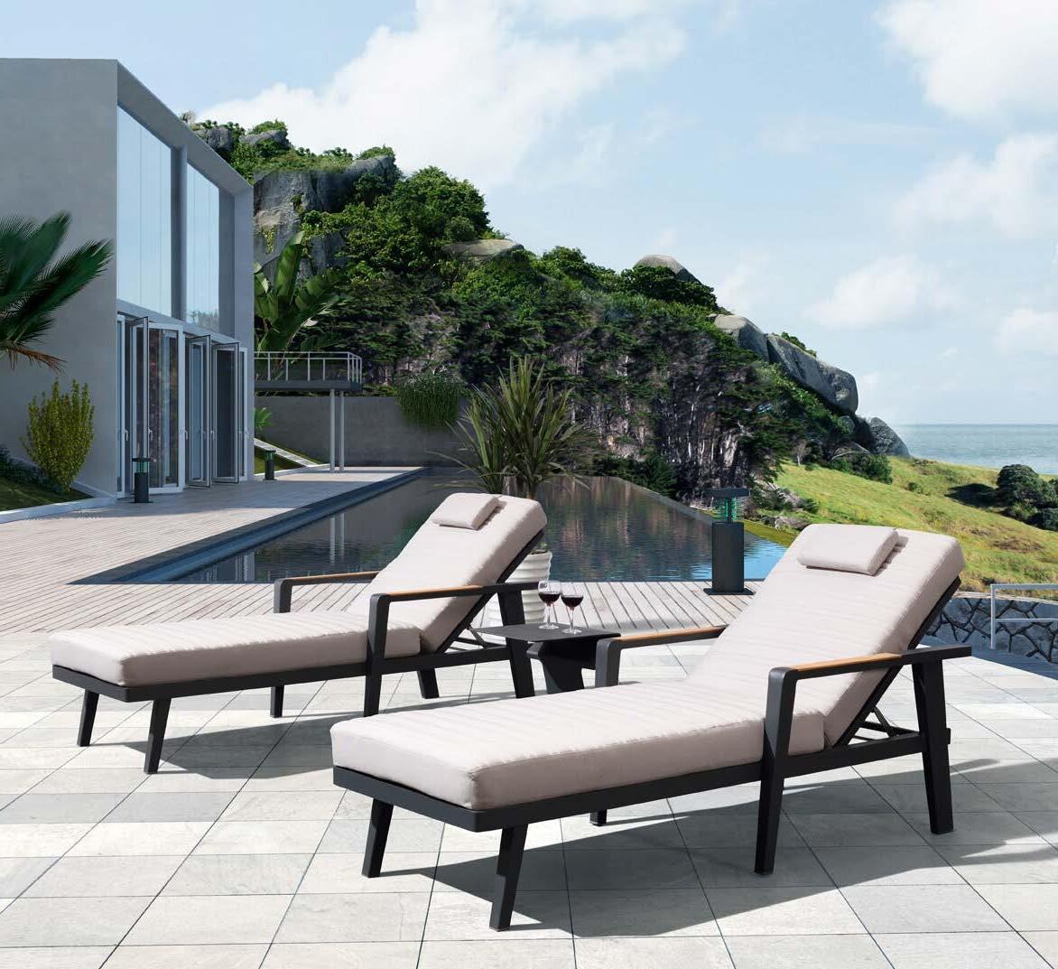 Set PALLISAD, ležalnik + mizica, ležalnik z blazino 80x215cm in mizica 47x47cm, aluminij/tik