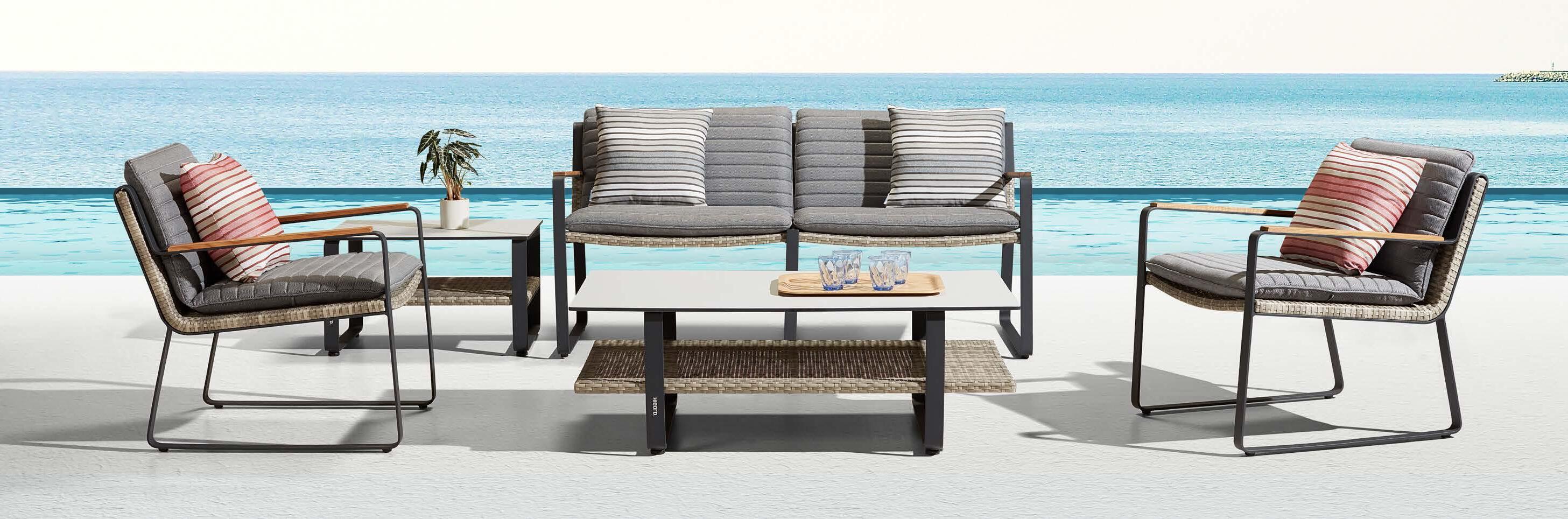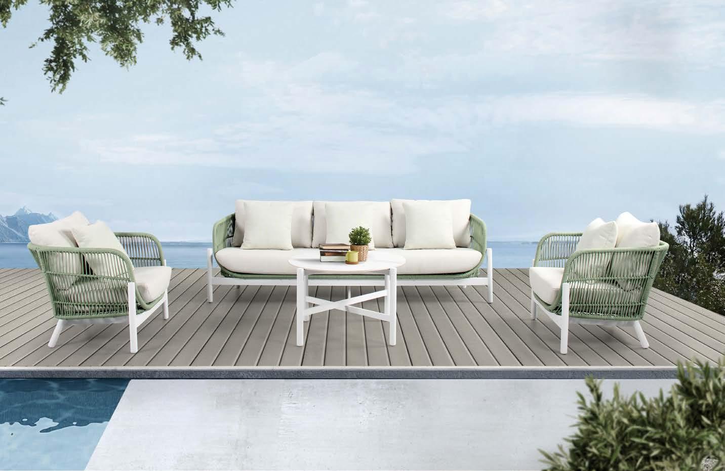 Koncept navdihnjen v odsevu modrine Sredozemskega morja vas bo popeljal v sončen dan s prijetnim pišem vetra. Kolekcija BORROMEO združuje naravne elemente v popolni harmoniji, kjer se naravna vrv združi s sodobnimi linijami aluminija. Prava mešanica enostavnega dizajna s prijetno nostalgijo! Garnitura bo postala vaš najljubši prostor sprostitve, kjer se boste zadrževali ure in ure.