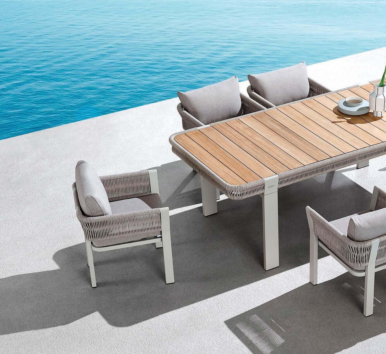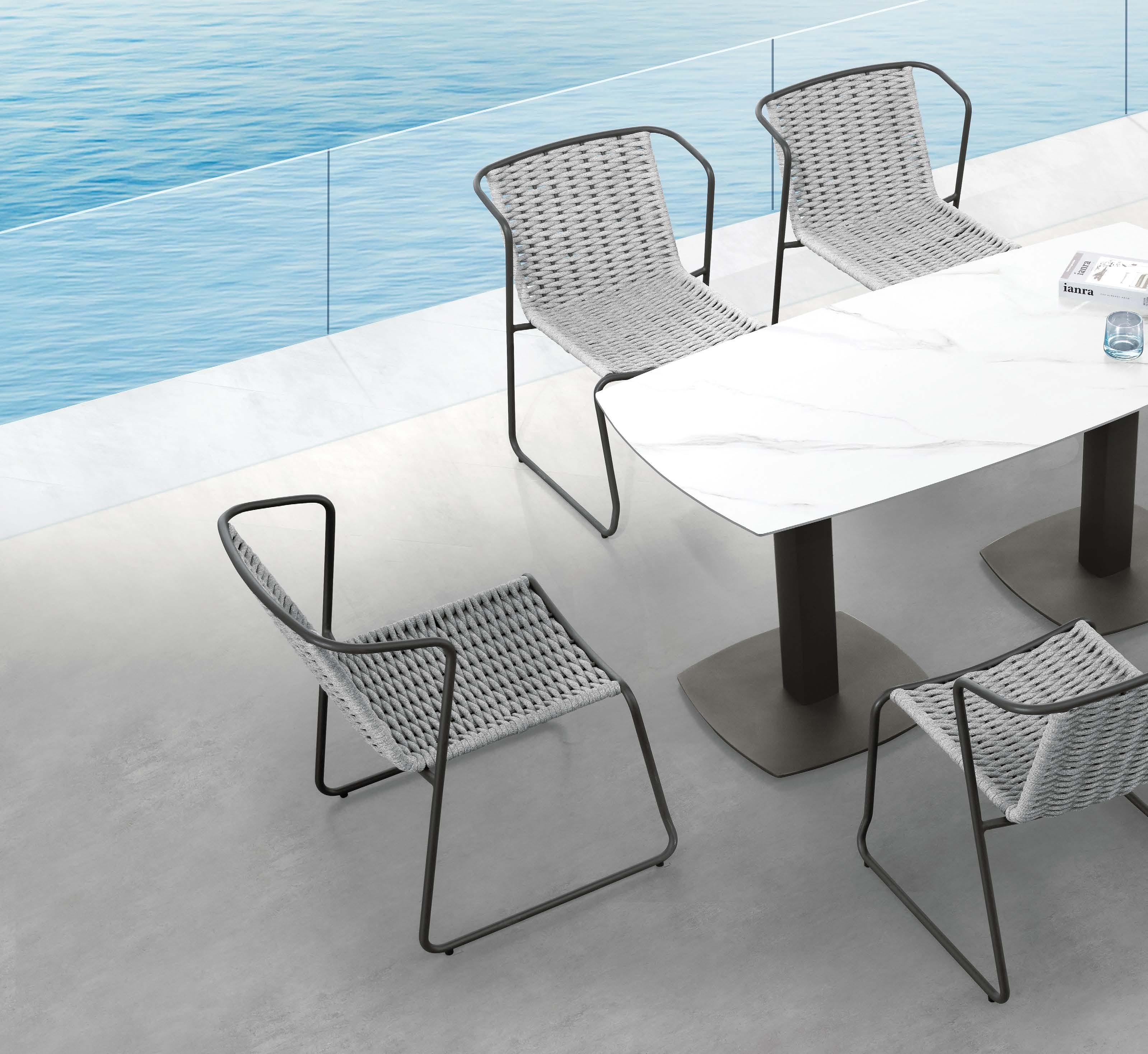 Doživite popolno harmonijo naravnih elementov in sodobnih linij aluminija. Mešanje naravne vrvi s sodobnim dizajnom ustvarja edinstven občutek, ki vas popelje na počitek ob morju. Sprostite se in uživajte v teksturah, ki jih prinaša BORROMEO.