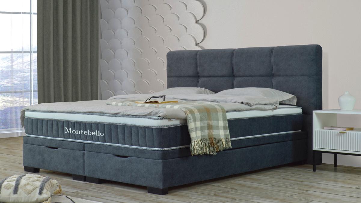 €2.729 Celotna postelja MONTEBELLO,160x200cm celotna postelja, dvižno dno in predal, blago CARAVAGGIO 5606 siva, vzmetnica žepkasto vzmetenje, višina vzmetnice 18cm
