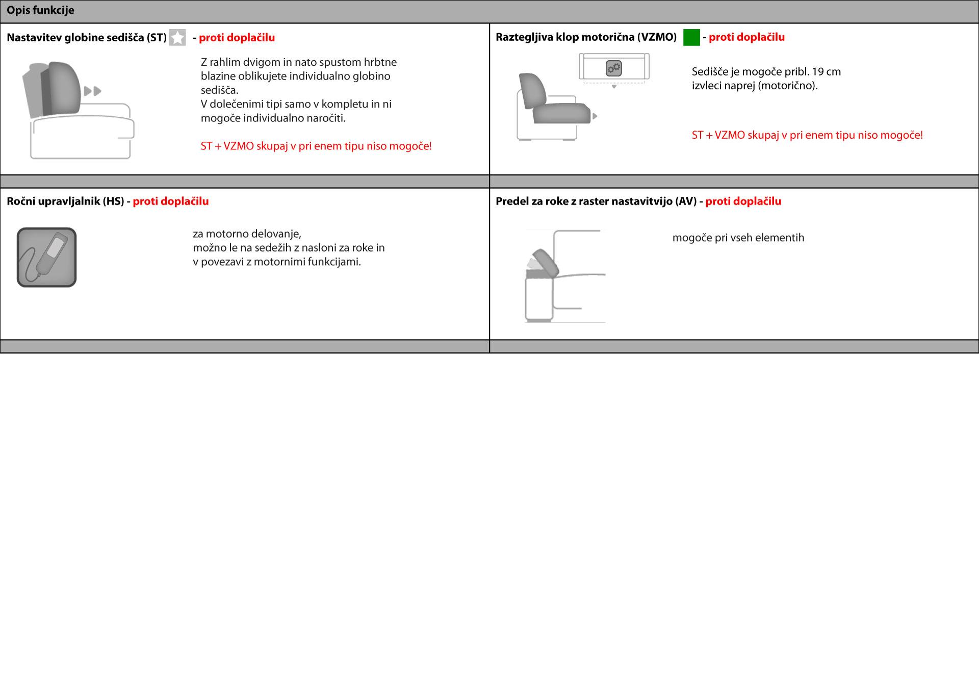 DoplačilozaVZMOnaprej pomičnoklopmotorizirani. Sediščejemogočepribl.19cm izvlecinaprej.(tipikisonavoljo sooznačeniz)-NEMOGOČEz ST-funkcijovenomsedežču-