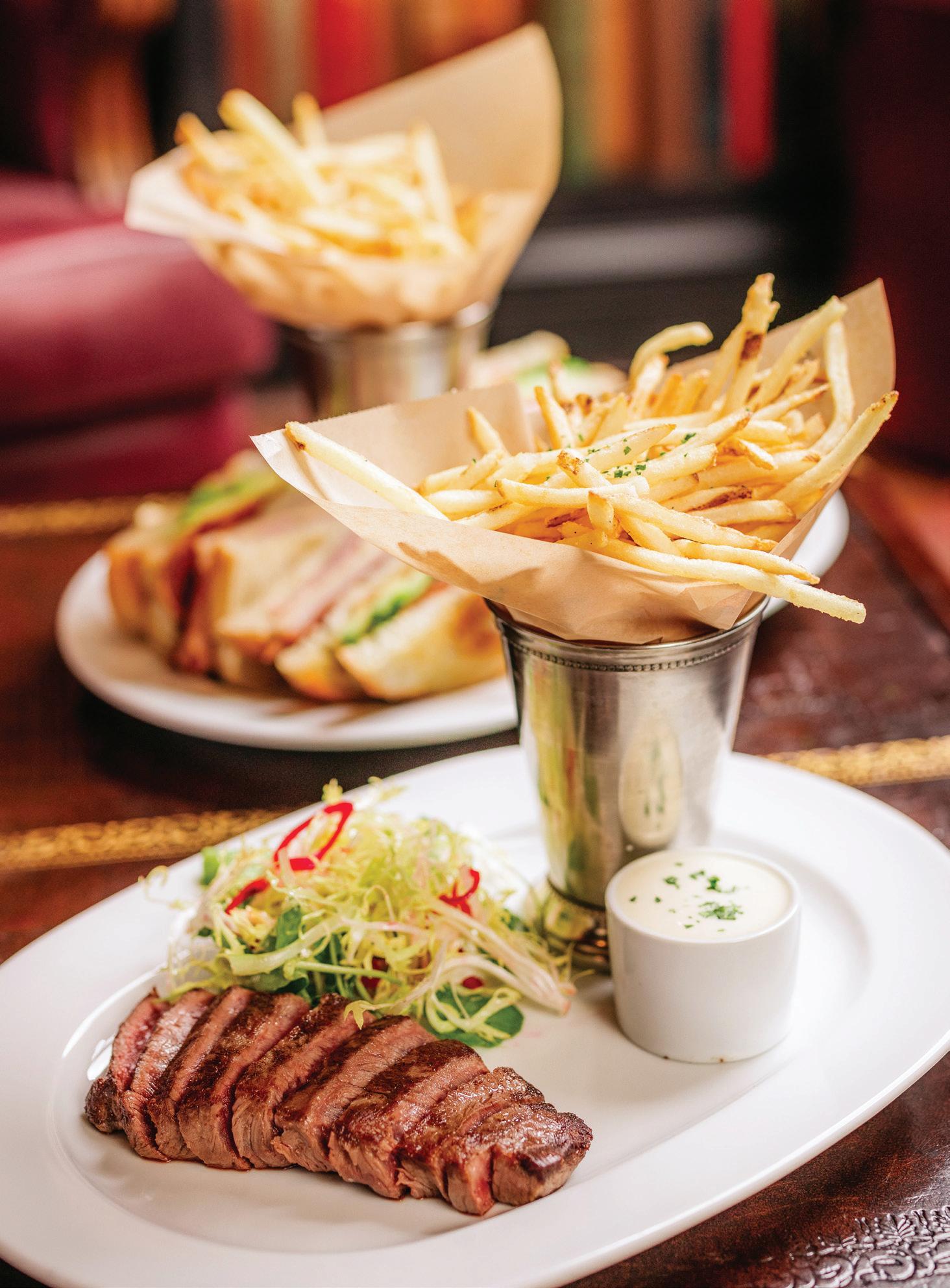• Hanger steak frites made with Harwood’s exclusive Texas wagyu from the HWD Beef program, bearnaise, frites and frisée salad
