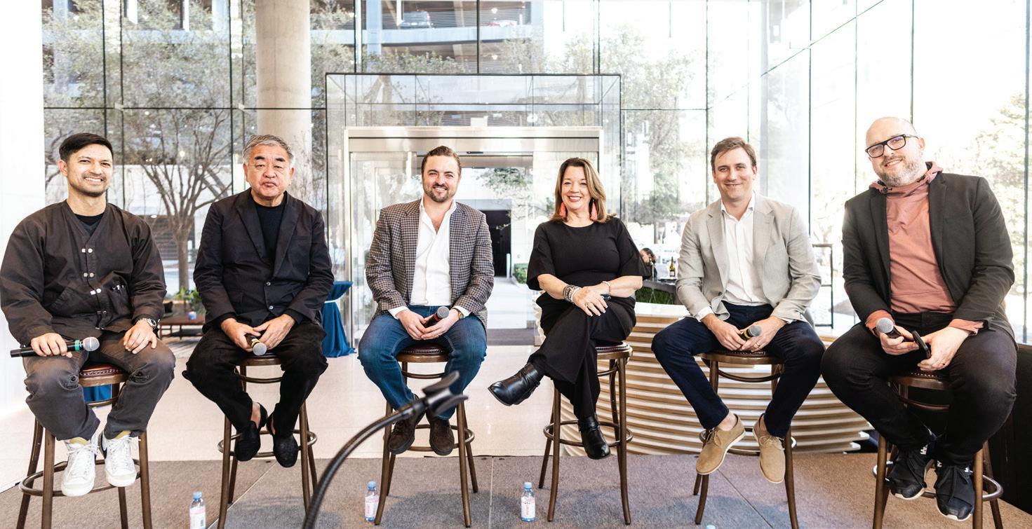 Harwood International hosted its third talk with Kengo Kuma and Balazs Bognar of Kengo Kuma & Associates in tandem with the opening of Harwood No. 14. We were also joined in conversation by Christine Perez, Editor of D CEO, Oliver Barbier-Mueller, President, Harwood International, and Kelly Whaley, Director of Leasing, Harwood International. The panel was moderated by Michael Friebele, Associate Principal at Perkins Eastman and contributor to D Magazine, Texas Architect, and the Architects Newspaper.