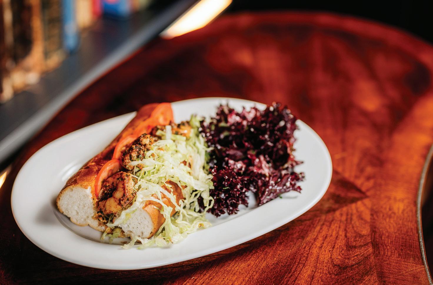 • Blackened shrimp po’ boy served on a French roll with remoulade, romaine and tomato