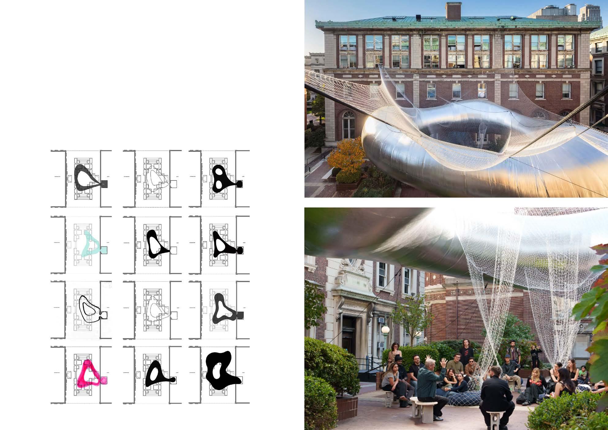 This on-campus installation for the ‘Outside in’ seminar at Columbia GSAPP was the result of student-led design and construction over two semesters (Spring + Fall 2024). I assisted Professors Laurie Hawkinson and Galia Solomonoff in teaching this course in the Spring phase where I executed duties such as course research, timeline creation, preparation and teaching of classes and student group assignments. Furthermore, I facilitated communication between various stakeholders; fabricators, engineers, campus facilities and school administration. In the following semester, the pavilion was set up on the Fayerweather courtyard and received widespread press for bringing the Columbia community together during a difficult time in the university’s recent history. This project has been published on Archinet, Dezeen, The Architect’s Newspaper and Columbia Spectator `