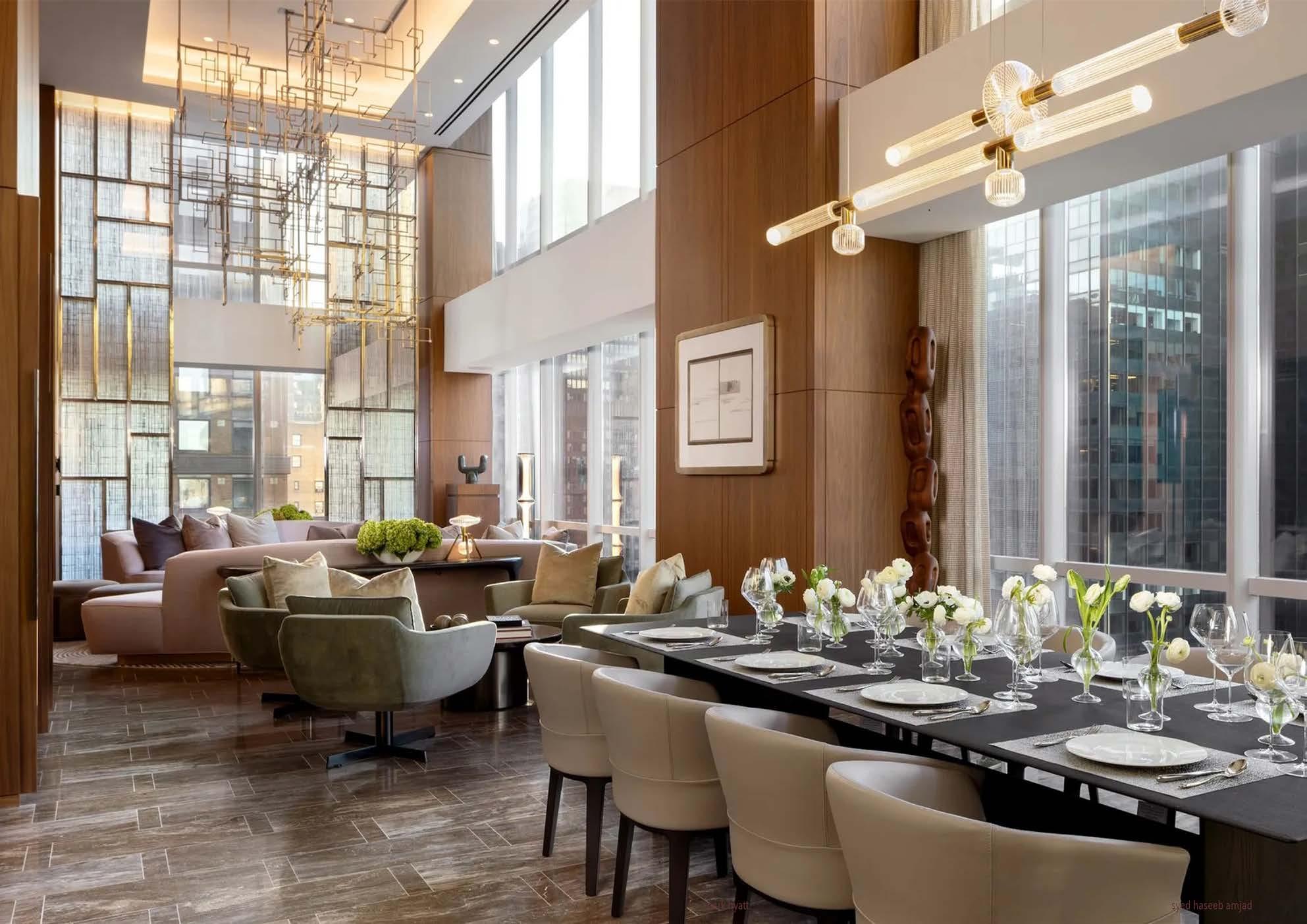 I played a role in the interior design of the 3,500-square-foot suite at the Park Hyatt New York, showcasing exclusive views of New York. This project exemplifies highly luxurious residential living in, featuring bespoke details and an eclectic palette of materials. My role involved managing the Design Development (DD) and Construction Documentation (CD) sets in collaboration with the CEO and design team to ensure smooth communication with the client, project managers, and general contractor. Additionally, I created 3D sketches to help visualize the interior space development, allowing for a more refined design process and effective decision-making. Through meticulous planning and coordination, we transformed the suite into a refined and captivating space that blends modern opulence with the dynamic character of New York City.