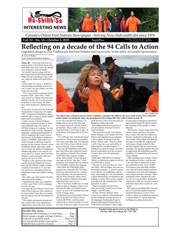 Canada’s Oldest First Nations Newspaper - Serving Nuu-chah-nulth-aht since 1974 Canadian Publications Mail Product haas^i>sa “Interesting News” Vol. 36 - No. 2 - Jan. 29, 2009 Sales Agreement No. 40047776