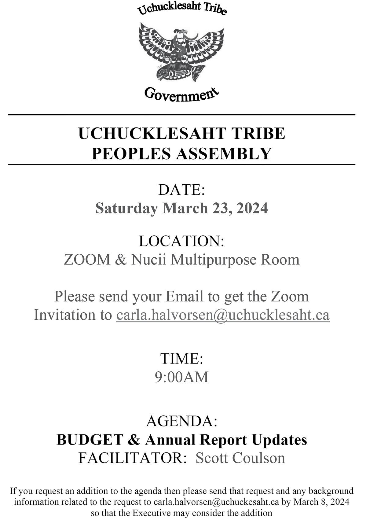 Alexandra Mehl (Ext. 286) (250) 724-5757 Fax: (250) 723-0463 alexandra.mehl@nuuchahnulth.org