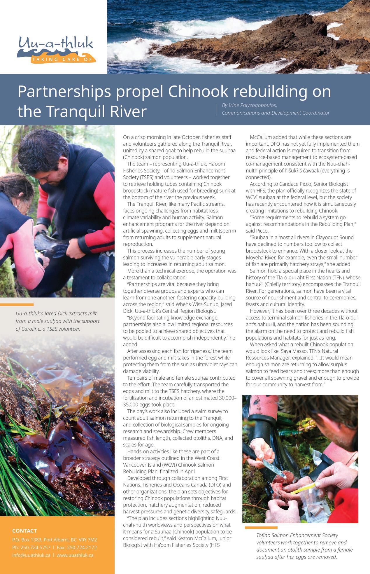 Nuu-chah-nulth Tribal Council P.O. Box 1383, Port Alberni, B.C. V9Y 7M2.