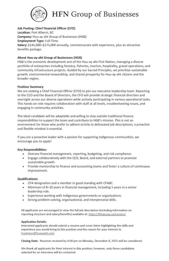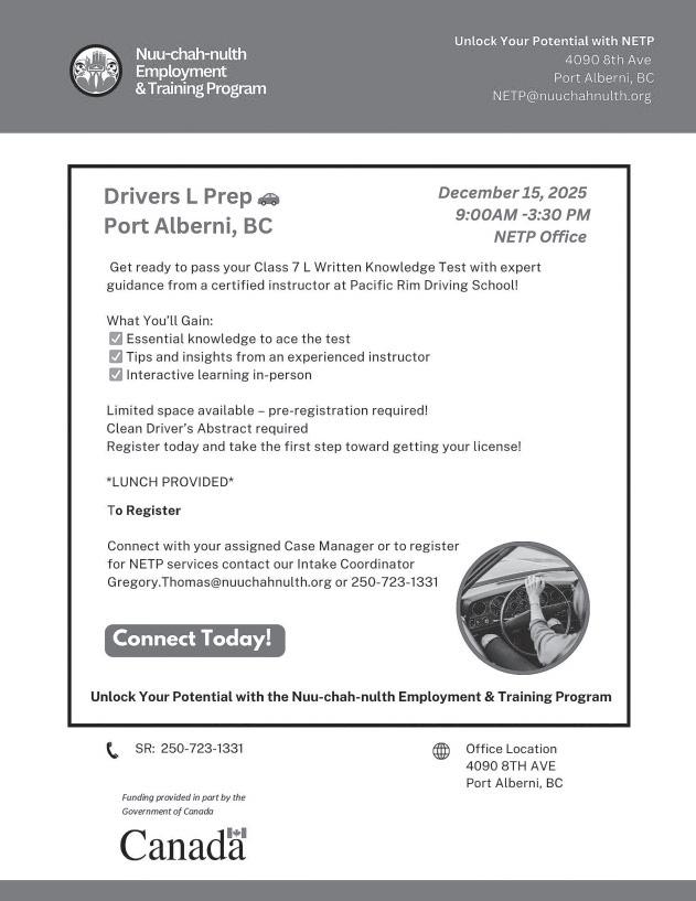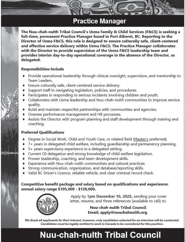 Need work experience? The Port Alberni Friendship Centre is looking for interested applicants for various positions. Call 250-723-8281