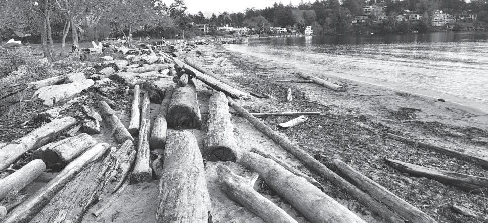 Logs gather at the shore of Cadboro-Gyro Park in Victoria. A new study from the University of Victoria