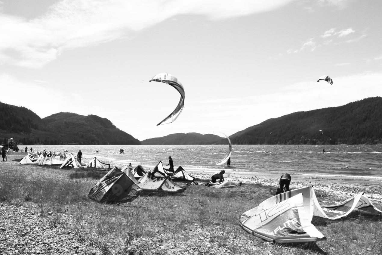 Kite surfers enjoy the strong wind over Nitinaht Lake on June 29. The lake’s wind-tunnel-like dynamic has made it a renowned destination for the activity.
