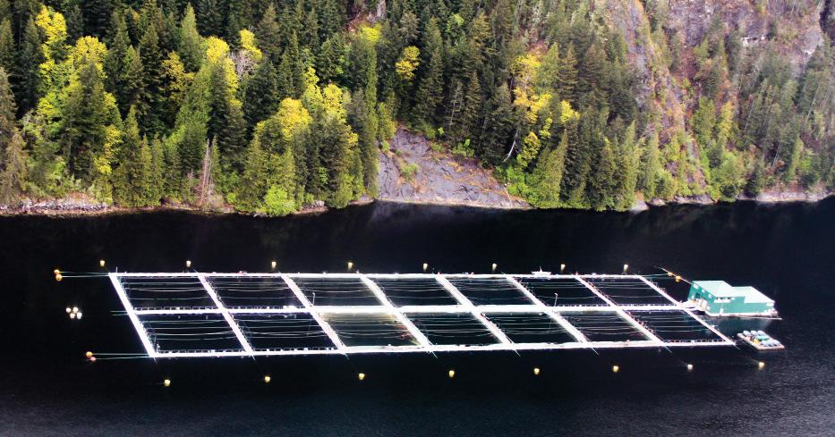 years, DFO will only consider land-based or aquatic closed-containment farms, which could operate for a nine-year term. It remains to be seen what will be viable, as net pens have long been the industry standard on the B.C. coast. Cermaq has trialed semi-closed containment pens on Vancouver Island’s west coast that block all interaction with wild salmon by using an enormous bag composed of a synthetic, non-permeable material. Oxygen and water are pumped into the semi-closed site from a depth of 23 metres, an additional measure that requires a considerable amount of power at remote locations.