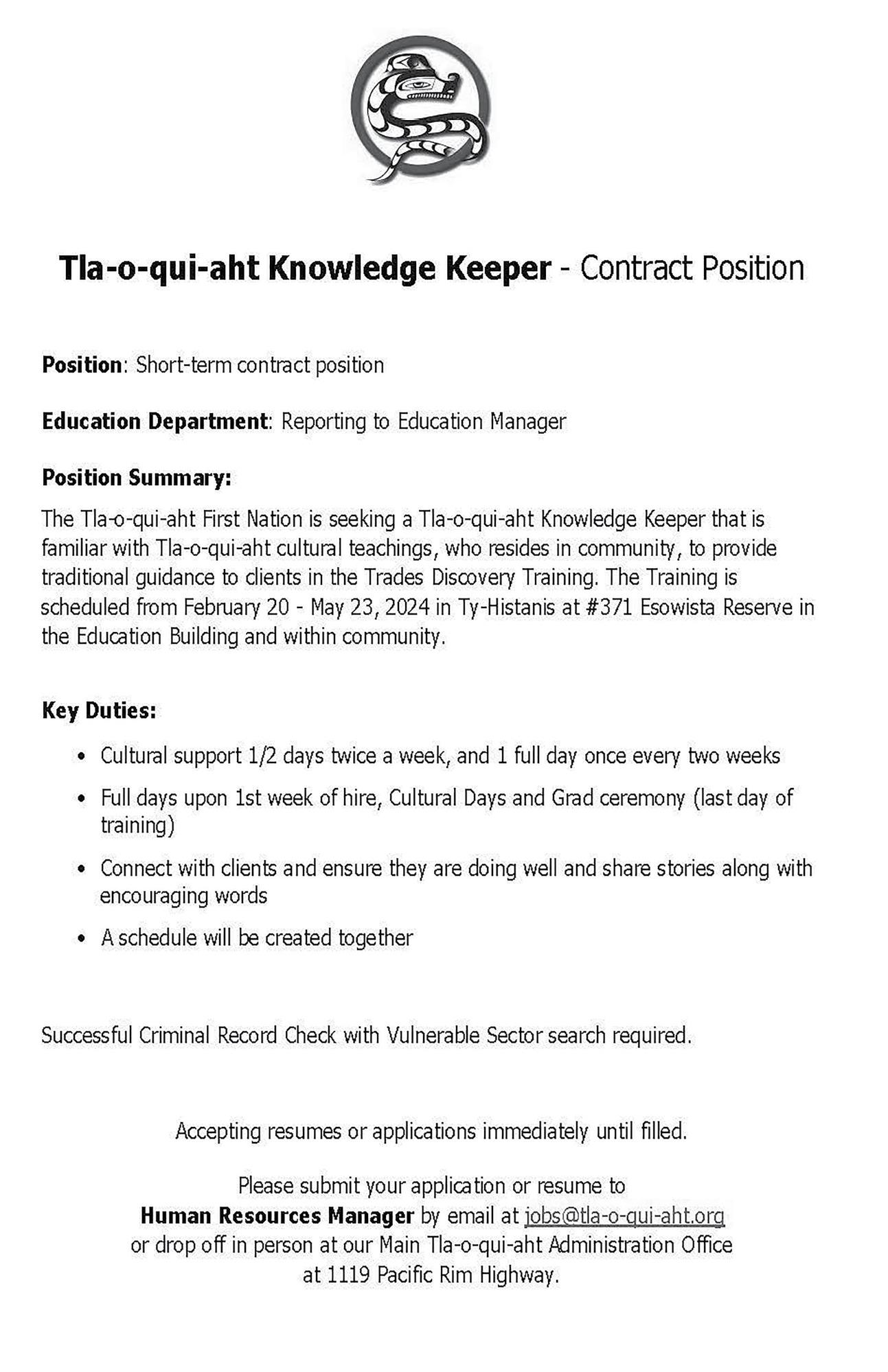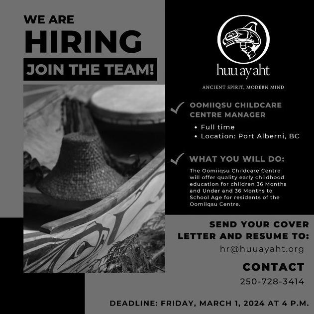 March 7, 2024—Ha-Shilth-Sa—Page 17 Check out our new Facebook page Nuu-chah-nulth Jobs and Events Updated daily!