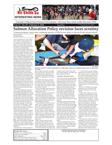 Canada’s Oldest First Nations Newspaper - Serving Nuu-chah-nulth-aht since 1974 haas^i>sa ¢ £ ¤ ¥ ¦ § ¡ £ ¨ © ¥ © ¨ ¥ ¤ C ! " # $ % & " ' ( ) 0 ) 1 2 ) 0 3 4 5 6 2 7 ) 8 2 9 0 @ A ) 2 6 3 B 9 1 4 7 8 ) 6 D @ E F B D D G D 0 8 H 9 I P Q Q P R R R S