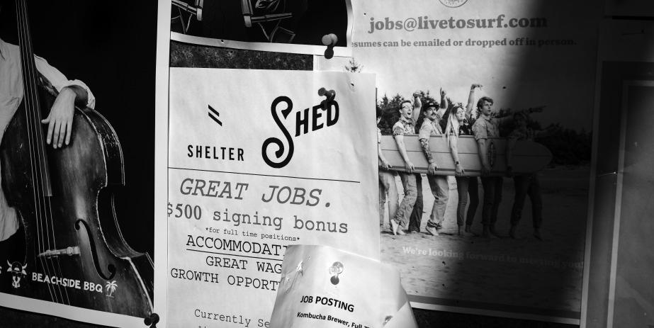 Photo by Melissa Renwick Job postings are hung on a community bulletin board in Tofi no, on September 2, showing a hiring bonus for dishwashers. Tofi no businesses struggle to stay open