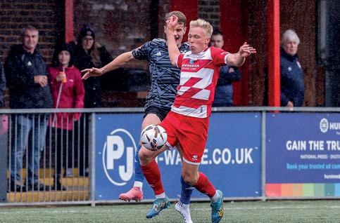 Kyran Wiltshire while we somehow managed to keep out a flurry of quick-fire goalbound efforts. But again we responded well after absorbing pressure, Joe Payne firing a freekick into the side netting. In general this season the officials have been of a far higher standard than at Step 3 but we were on the wrong end of some highly questionable decisions against Hemel including a booking for Gavin for nothing more than throwing his arms in the air.