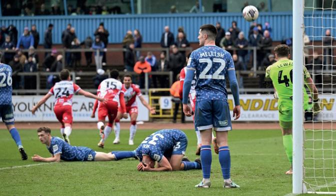 down the Silkmen at the top. Imagine our horror, then, as the guests battled back fiercely; turning the ta-bles and stealing the win. They went onto win the title and earn promotion… a real sliding doors moment perhaps?