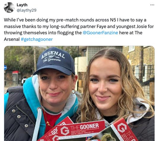 (You may have seen Faye and my youngest daughter Josie flogging the print issue of the Gooner Fanzine at women’s games at the Emirates recently. A team I’m so proud of.)