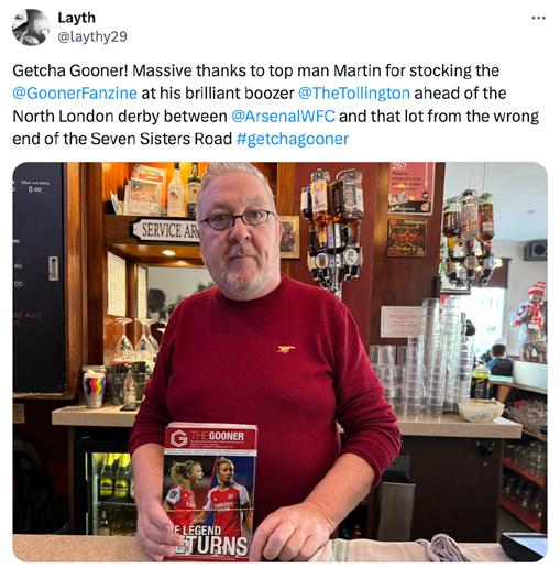 The good news was that my late train home opened up some time for a post-match drink in the Tollington, who were stocking some copies of the latest Gooner behind the bar. See you there after the Leicester game!