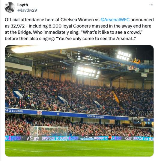 Arsenal has already broken the WSL attendance record twice this season, with 47,367 fans attending the North London