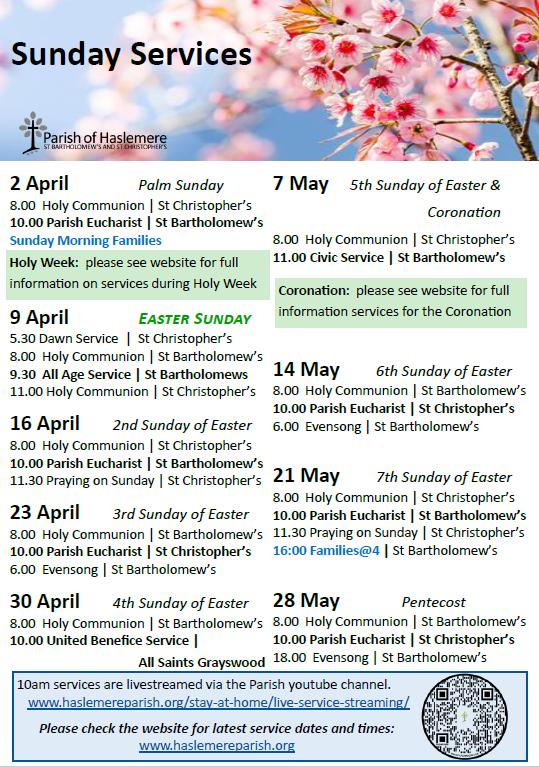 Mon/Tue/Thu/Fri 9am-3pm office@haslemereparish.org www.haslemereparish.org 01428 644578