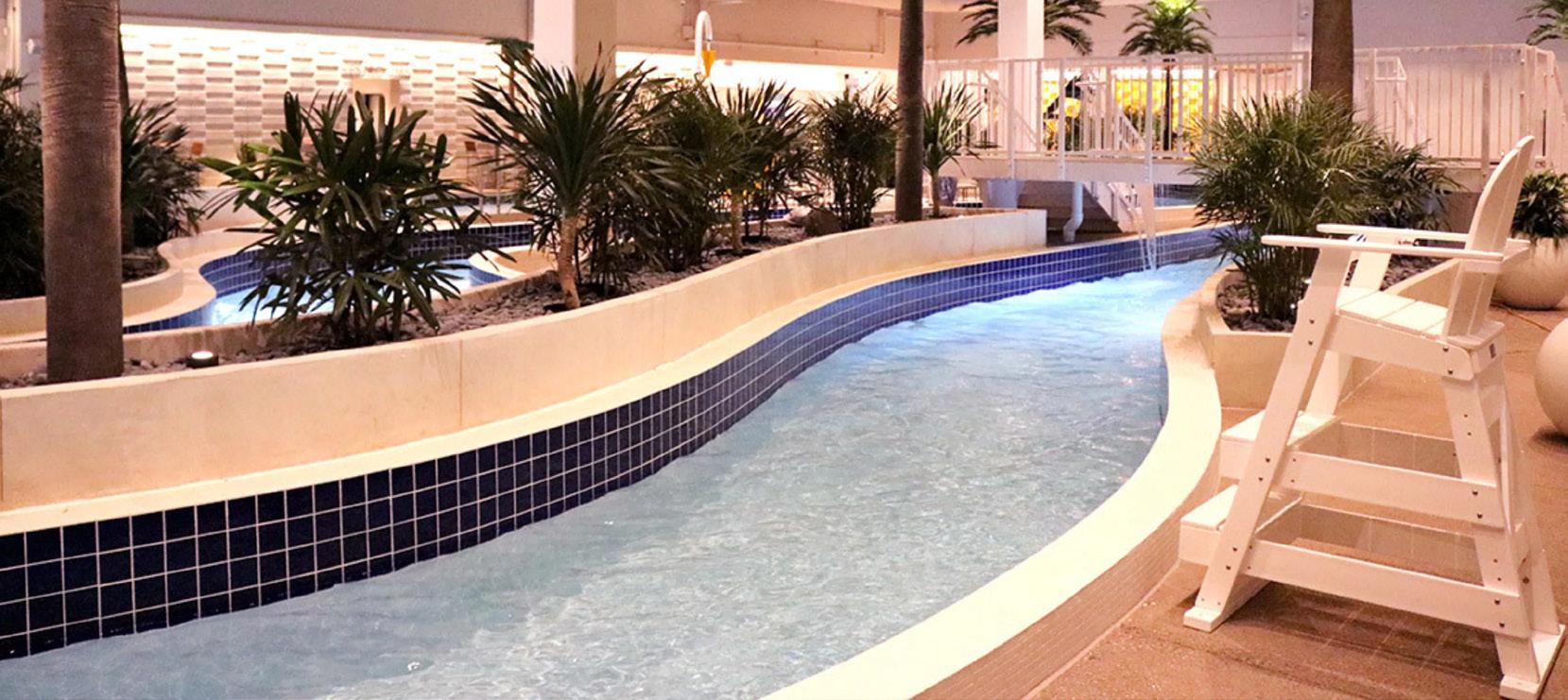 Enter the zero depth pool and play in the watersprays and fountains or leap across the water like a frog on Lily Pad Crossing.