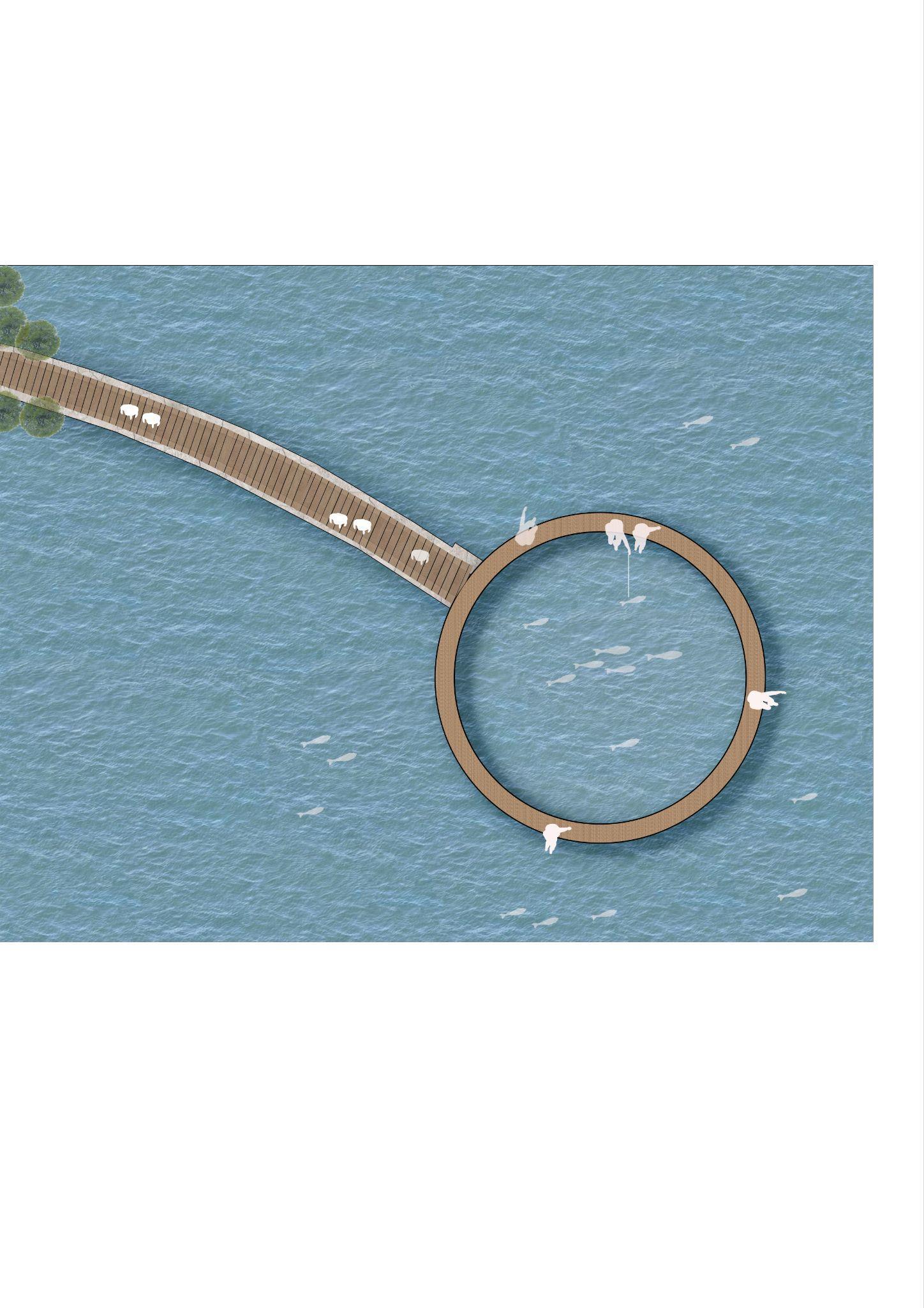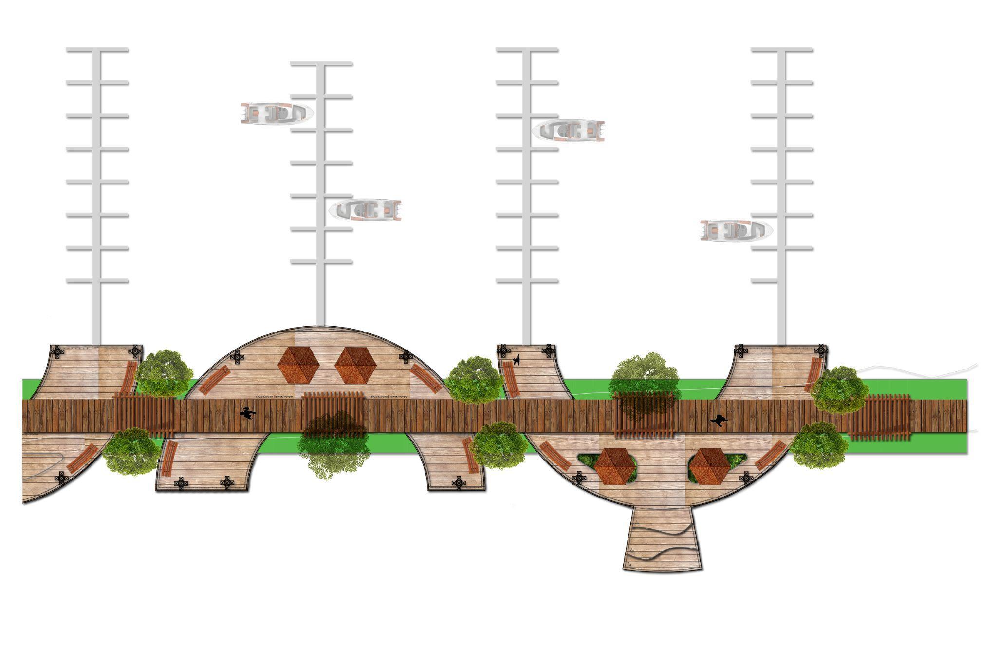 The harbour area is designed to give a visual effect and experience of a ramp, which guides you towards the end of the harbour and experience of visual surprise.