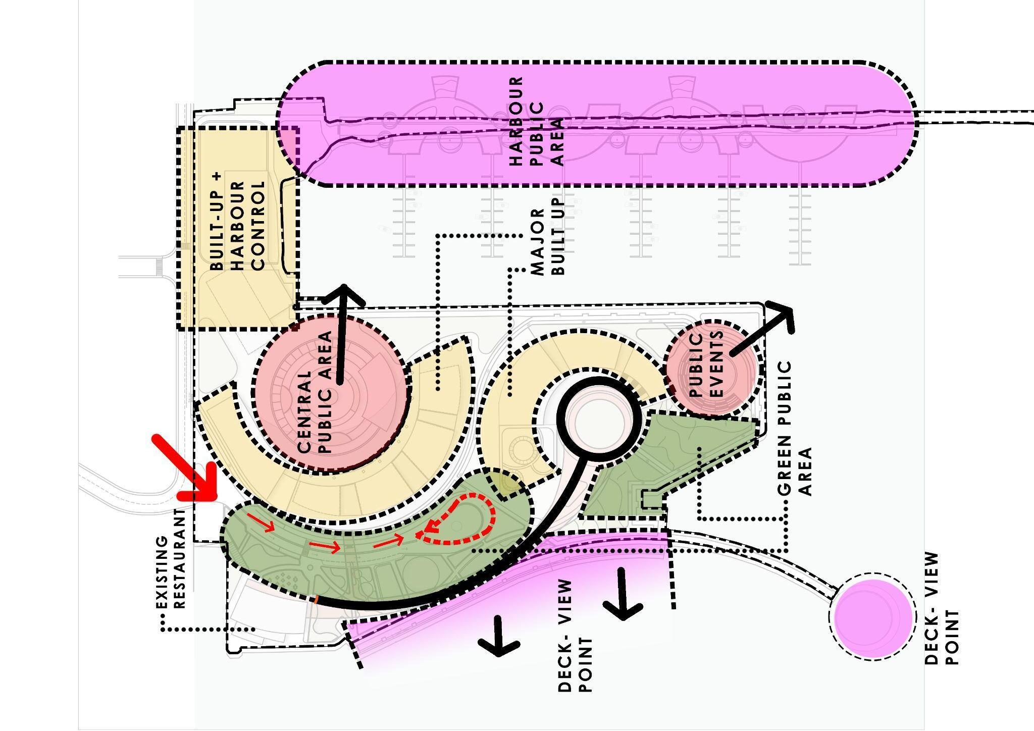 Harbour is proposed to incorporate public spaces to enjoy the view of the waterfront have experience the water from the closest. This area will also benefit from water activities and daily hangout space.