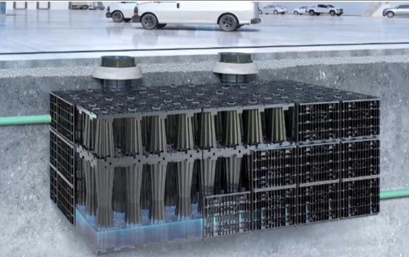 By Utilizing Geocellular Surface Water Management Systems and open bounded structure can be created underground to efficiently distribute the surface water.