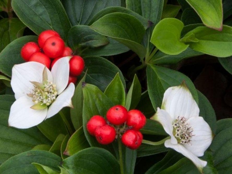 Bunchberry is a plant that grows low on the ground in colonies and at as a mat in exposed soil areas. It is considered to be the Canadian National Flower.
