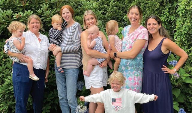 Pictured from left to right: Michele Stover Byrne ’05 with daughters Nora and Blair (standing in the white sweatshirt); Hope Shiverick Adair ’08 with son Lincoln, Melanie Stover Graf ’08 with son Rowan, Felice Mueller Graves ’08 with daughter Zaida, and KK Koury Sterling ’08.