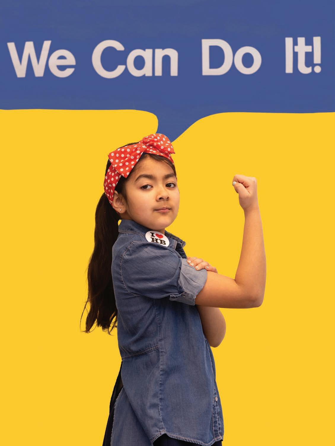 First-grade students channeled the spirit of Rosie the Riveter during HB’s Women’s History Month celebration.