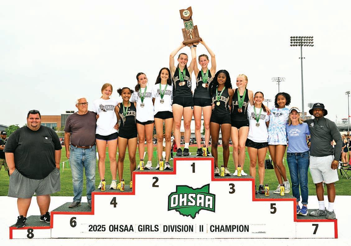 The Blazer track and field team stood at the top of the podium as state champions at the 2025 OHSAA Division II track and field meet. The team victory included a first-place finish by the 4x100M relay team of Chloe Battle ’26, Jane Kennedy ’25, Aaris Minter ’26, and Isabelle Seelbach ’26.