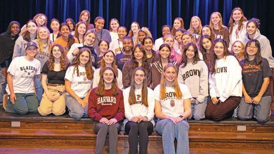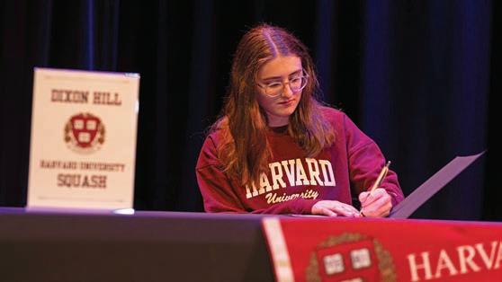 HB’s Signing Day celebrated three seniors who will continue their athletic careers at the collegiate level: Dixon Hill ’25 (Squash, Harvard University); Jane Kennedy ’25 (Track & Field, Princeton University); and Beatrice Stewart ’25 (Swimming, Brown University).
