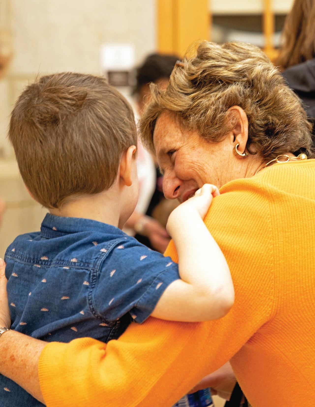 Gail Weinberger Stein ’75 visits with her grandson, a student in HB’s co-ed Early Childhood program during EC Grandparents and Special Friends Day.