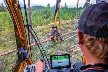 The Tigercat D7 control system combines a solid and field proven hardware and bucking control system with a Tigercat developed head control and user interface. The system offers powerful functionality, simplicity and intuitive operator navigation. There are two types of bucking controls available for D7. Prioritybased bucking logic utilizes a list of operator-entered log specifications sizes to determine how best to process the tree. D7 Optimization level uses a value-based logic. Using multiple layers of matrices correlating price, demand, and production limits to each log size under each tree species, the control system optimizes each processed tree to achieve the best value. These matrices are usually programmed by the timber buyer. Both Tigercat D7 Priority and Optimization levels offer StanForD Classic, StanForD 2010, and PDF production reporting based on contracts, operators, species and product groups. The reports provide total quantity and volume, as well as per species and product group quantities and volume. Reports can be viewed on screen, or exported for later analysis. D7 also sends production volume data to RemoteLog, Tigercat’s optional telematics system. D7 can be equipped with a GPS receiver and the GeoInfo software. This provides an active navigation application using the machine’s current position on a georeferenced map. Work site maps can be viewed on the in-cab display screen, allowing the operator to easily view the site layout, track the movement of the machine, and view production information. Restricted areas can be marked with boundary alarms.