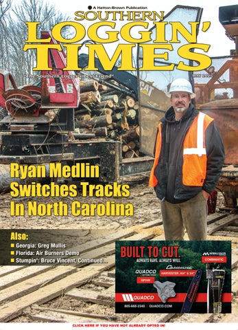 Subscription Information—SLT is sent free to logging, pulpwood and chipping contractors and their supervisors; managers and supervisors of corporate-owned harvesting operations; wood suppliers; timber buyers; wood procurement and land management officials; industrial forestry purchasing agents; wholesale and retail forest equipment representatives and forest/logging association personnel in the U.S. South. See form elsewhere in this issue. All non-qualified U.S. subscriptions are $65 annually; $75 in Canada; $120 (Airmail) in all other countries (U.S. funds). Single copies, $5 each; special issues, $20 (U.S. funds). Subscription Inquiries TOLL-FREE 800-669-5613; Fax 888-611-4525. Go to www.southernloggintimes.com and click on the subscribe button to subscribe/renew via the web. All advertisements for Southern Loggin’ Times magazine are accepted and published by Hatton-Brown Publishers, Inc. with the understanding that the advertiser and/or advertising agency are authorized to publish the entire contents and subject matter thereof. The advertiser and/or advertising agency will defend, indemnify and hold Hatton-Brown Publishers, Inc. harmless from and against any loss, expenses, or other liability resulting from any claims or lawsuits for libel violations or right of privacy or publicity, plagiarism, copyright or trademark infringement and any other claims or lawsuits that may arise out of publication of such advertisement.