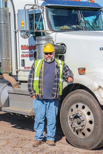 week. Truck oil is changed every 15,000 miles and greased weekly. Mullis keeps two full-time mechanics that both hold CDLs and wear multiple hats: moving equipment, hauling wood and turning wrenches.