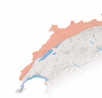 celle qui s’y prête le mieux, et il est très répandu dans notre pays. Partons ensemble pour un Tour de Suisse, ou plutôt pour un balayage de la Suisse du nord au sud, qui va nous permettre de définir des régions — géologiques et paysagères — en forme de bandes successives orientées WSW—ENE.