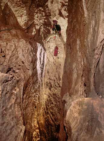 Marcher sous terre est le propre de l’explorateur de grottes, même si marcher veut souvent dire ramper, se contorsionner, se faufiler ; bref une marche à une cadence incroyablement lente si on l’exprime en kilomètres à l’heure et on la compare à la randonnée en montagne. À mesure des nouvelles explorations, un type d’obstacle s’est présenté de plus en plus souvent sous les pas des découvreurs du monde souterrain : il fallait escalader, ou plus souvent désescalader : la montagne à l’envers comme l’ont dit certains. L’exploration des gouffres présentait soudain de bien plus grandes difficultés que celle des grottes. Les exigences techniques, physiques, mentales devenaient d’un autre ordre, jusqu’à proclamer de manière provocante :