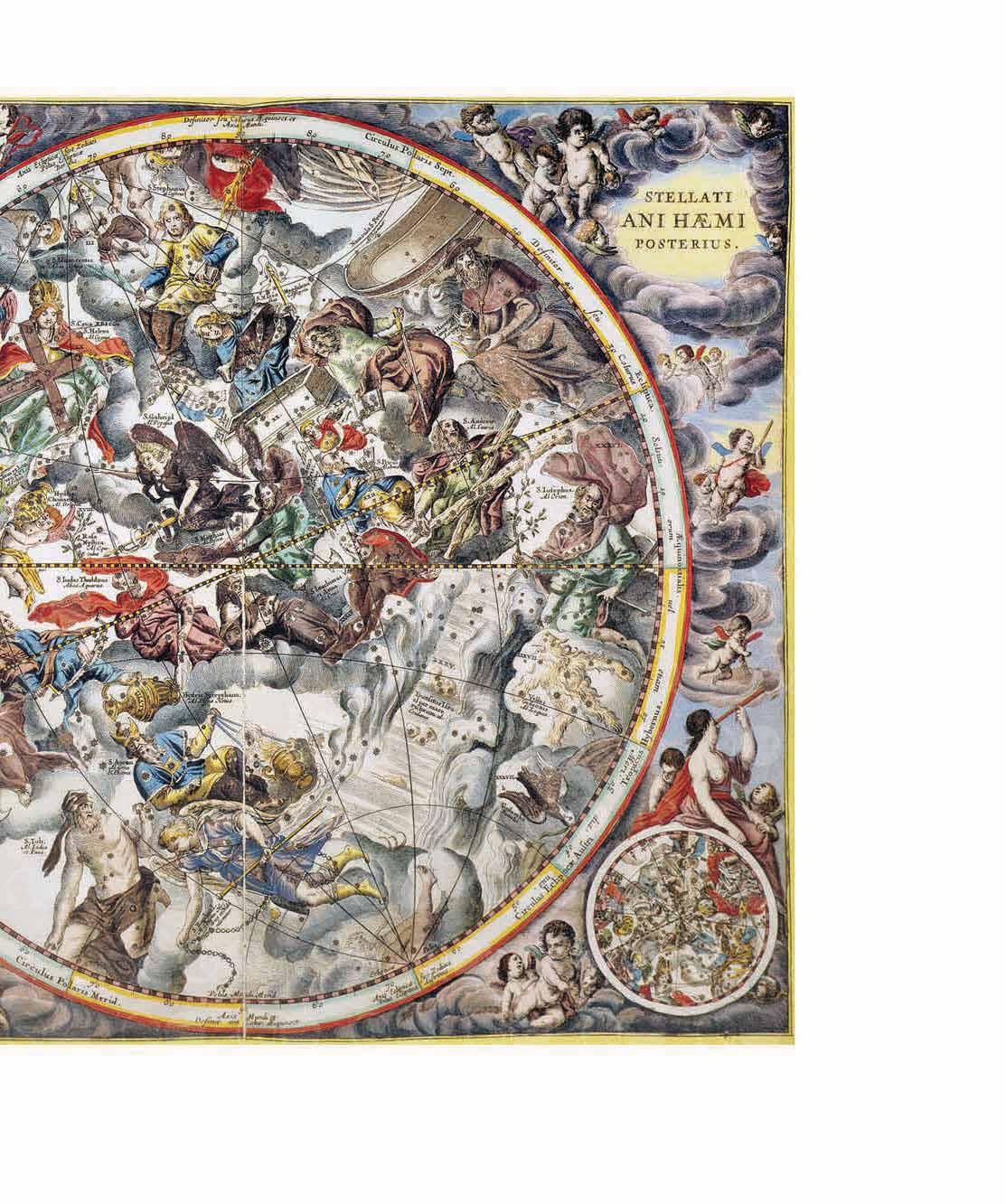 Manche bezeichnen die Harmonia macrocosmica als den schönsten Himmelsatlas, der jemals hergestellt wurde. Knapp 60 Jahre nach der Uranometria (siehe S. 30–34) publiziert, sollte er den letzten Band des umfangreichen Novus Atlas von Johannes Janssonius (1588–1664), auch bekannt als Jan Jansson, bilden. Dieser mehrbändige Atlas wurde von dem berühmten Kartografen Gerard Mercator (nach dem die Mercator-Projektion benannt ist) geplant und sollte geografische, aber auch Himmelskarten des gesamten damals bekannten Universums enthalten.