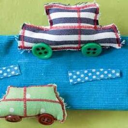 Dieses Wickel-Etui sieht komplizierter aus, als es ist: Es besteht aus zwei langen Stoffrechtecken, die verstürzt zusammengenäht werden (siehe Seite 44/45). Möchtest du das Etui mit einer Applikation verzieren, wird diese aufgenäht, bevor du die zwei Stoffrechtecke zusammennähst.